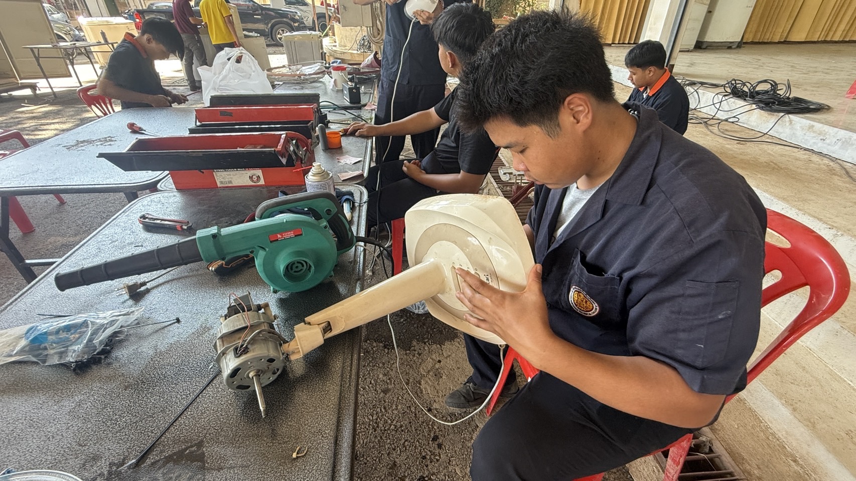 วันที่ 1 พฤศจิกายน 2567 นายวินัย จันทรานาค ผู้อำนวยการวิทยาลัยเทคนิคสันกำแพง มอบหมายให้ นางสาวอรวรรณ แสงดาว รองผู้อำนวยการฝ่ายพัฒนากิจการนักเรียน นักศึกษา และรวมไปถึงคณะครู นักเรียน แผนกวิชาช่างยนต์ แผนกวิชาช่างไฟฟ้ากำลัง แผนกวิชาอิเล็กทรอนิกส์ และแผนกวิชาช่างก่อสร้าง ออกหน่วยบริการ Fix it จิตอาสา ช่วยเหลือผู้ประสบภัยที่ได้รับความเสียหายจากเหตุการณ์น้ำท่วม ณ ฌปนสถาน บ้านสันทรายดอนจั่น หมู่ที่ 3 ต.ท่าศาลา อ.เมือง จ.เชียงใหม่