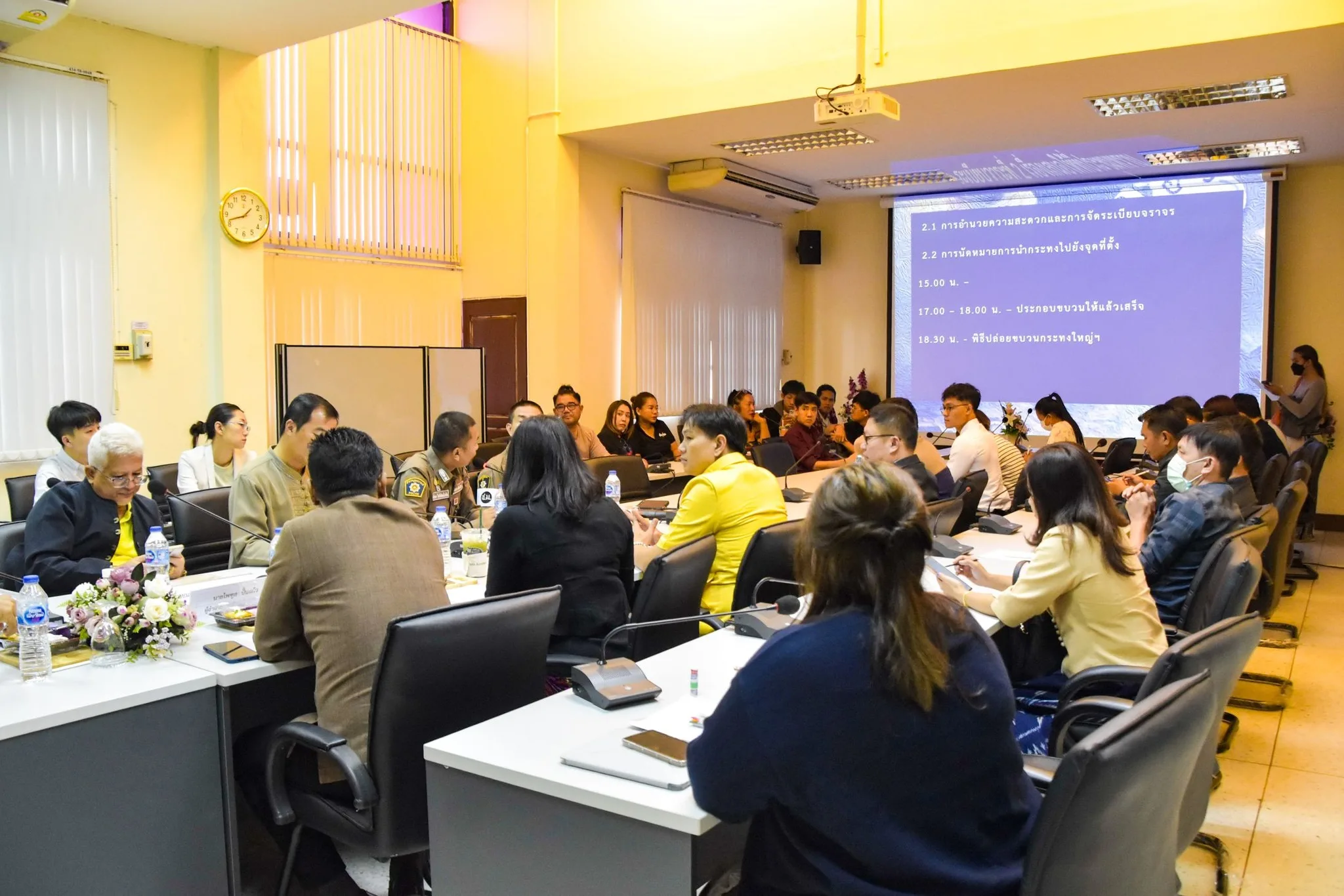 วันที่ 6 พฤศจิกายน 2567 นายอัศนี บูรณุปกรณ์ นายกเทศมนตรีนครเชียงใหม่ มอบหมายให้ นายสุนทร ยามศิริ รองนายกเทศมนตรีนครเชียงใหม่ เป็นประธานในการประชุมเตรียมความพร้อมการประกวดขบวนกระทงใหญ่ ชิงถ้วยพระราชทานฯ ในงานประเพณีเดือนยี่เป็งเชียงใหม่ ประจำปี 2567 โดยมี นายมนต์ชัย พงษ์เกียรติก้อง รองปลัดเทศบาล นายไพฑูล ปั้นแก้ว ผู้อำนวยการสำนักการศึกษา นางสาวดาริกา เตชะวัง ผู้อำนวยการส่วนส่งเสริมการศึกษา ศาสนาและวัฒนธรรม และผู้เข้าร่วมประกวดขบวนแห่กระทงใหญ่ และเจ้าหน้าที่ผู้เกี่ยวข้อง เข้าร่วมการประชุมดังกล่าว ณ ห้องประชุมอัญชัน สำนักงานเทศบาลนครเชียงใหม่