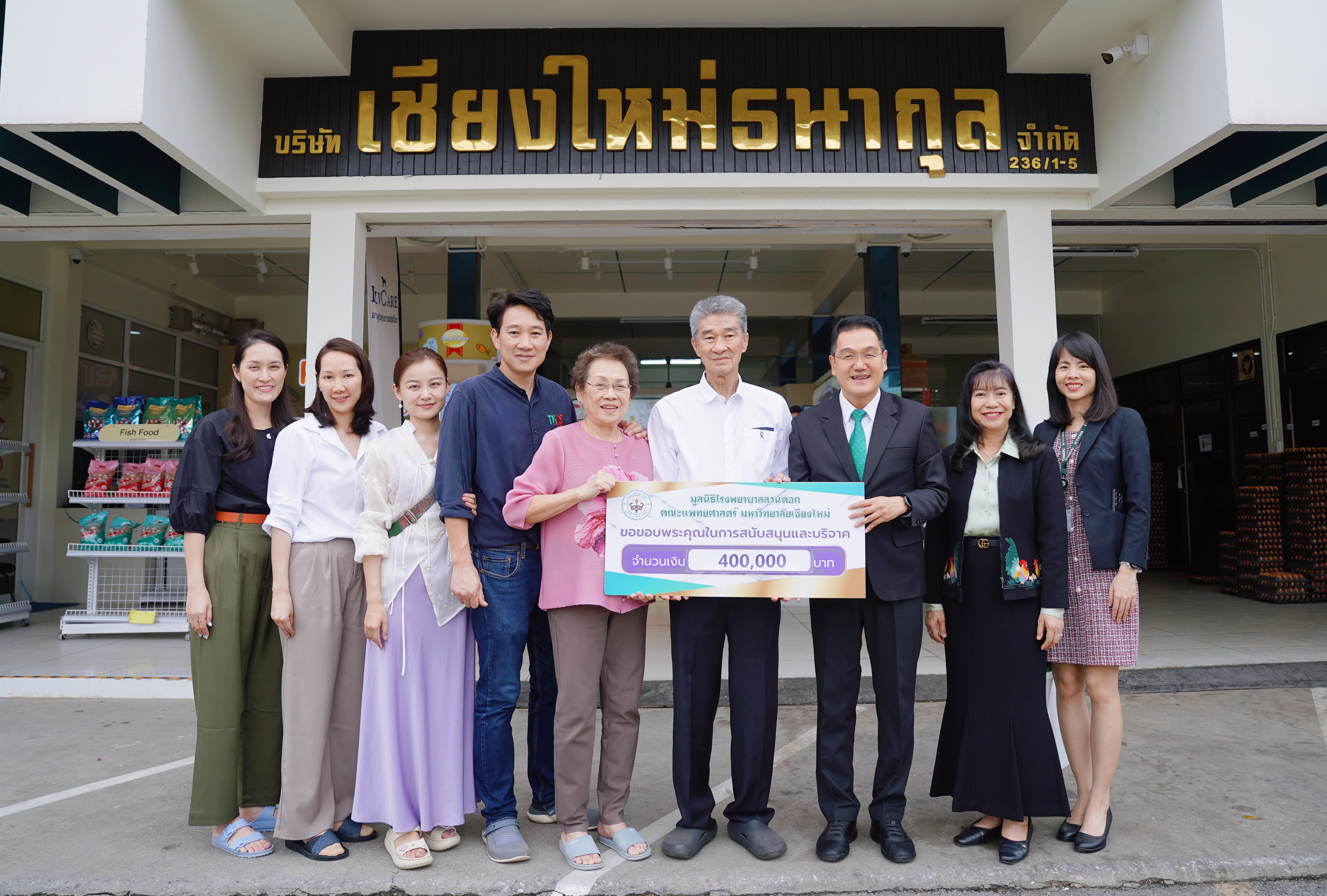 ศ.(เชี่ยวชาญพิเศษ)นพ.บรรณกิจ โลจนาภิวัฒน์ คณบดีคณะแพทยศาสตร์ มช. พร้อมด้วย คุณพัชรา อุบลศรี ที่ปรึกษาประธานมูลนิธิโรงพยาบาลสวนดอก รับมอบเงินบริจาคจำนวน 400,000 บาท จาก คุณพงษ์ศักดิ์ และ คุณสุวิมล ลักษณ์ธนากุล พร้อมครอบครัว ในนาม บริษัท ลักษณ์ธนากุล จำกัด และ บริษัท เดอะสตาร์ฟิช จำกัด สมทบทุนมูลนิธิโรงพยาบาลสวนดอก ในวันที่ 6 พฤศจิกายน 2567 ณ เชียงใหม่ลักษณ์ธนากุล อ. เมือง จ. เชียงใหม่