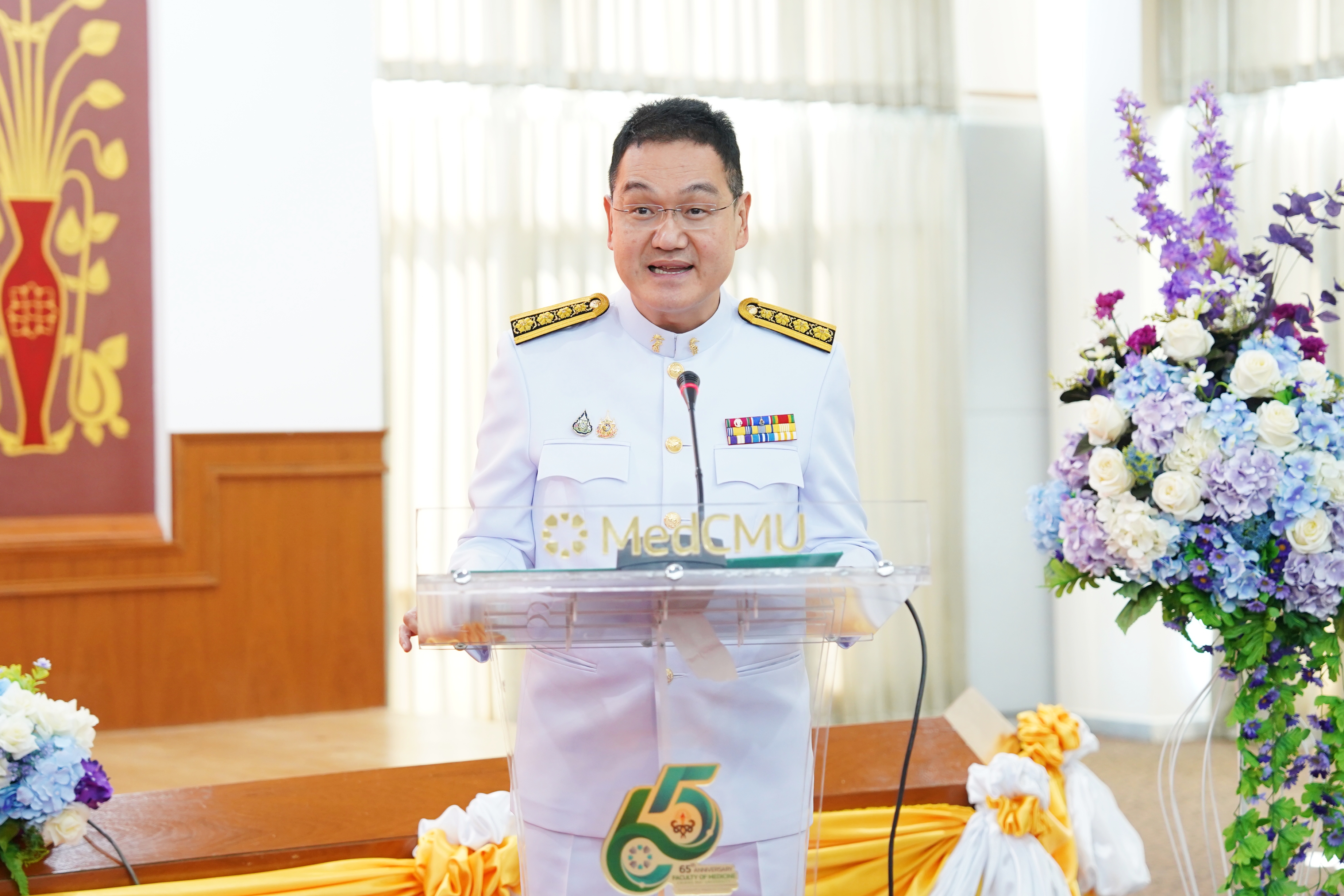 ศ.(เชี่ยวชาญพิเศษ)นพ.บรรณกิจ โลจนาภิวัฒน์ คณบดี เป็นประธานกล่าวเปิด แสดงความยินดี และกล่าวแสดงความขอบคุณที่ได้ให้การสนับสนุนคณะฯ ในพิธีรับพระราชทานเครื่องราชอิสริยาภรณ์อันเป็นที่สรรเสริฐยิ่งดิเรกคุณาภรณ์ ประจำปี 2567 แก่ผู้มีอุปการคุณคณะแพทยศาสตร์ มหาวิทยาลัยเชียงใหม่ โดยมี รศ.นพ.ณัฐพงศ์ โฆษชุณหนันท์ รองคณบดีคณะแพทยศาสตร์ มช., ผศ.พญ.พุดตาน วงศ์ตรีรัตนชัย รองคณบดีคณะแพทยศาสตร์ มช., รศ.พญ.ยุพา สุมิตสวรรค์ ที่ปรึกษาผู้ทรงคุณวุฒิคณะแพทยศาสตร์ มช. พร้อมด้วย คุณพัชรา อุบลศรี ที่ปรึกษาประธานมูลนิธิโรงพยาบาลสวนดอก และบุคลากรคณะแพทยศาสตร์ มช. ร่วมในพิธี พร้อมกันนี้ คุณวีระศักดิ์ จิตศักดานนท์ ตัวแทนผู้รับเครื่องราชอิสริยาภรณ์ฯ กล่าวแสดงความขอบคุณ ในวันที่ 15 พฤศจิกายน 2567 ณ ห้องประชุมชั้น 15 อาคารเฉลิมพระบารมี คณะแพทยศาสตร์ มช.