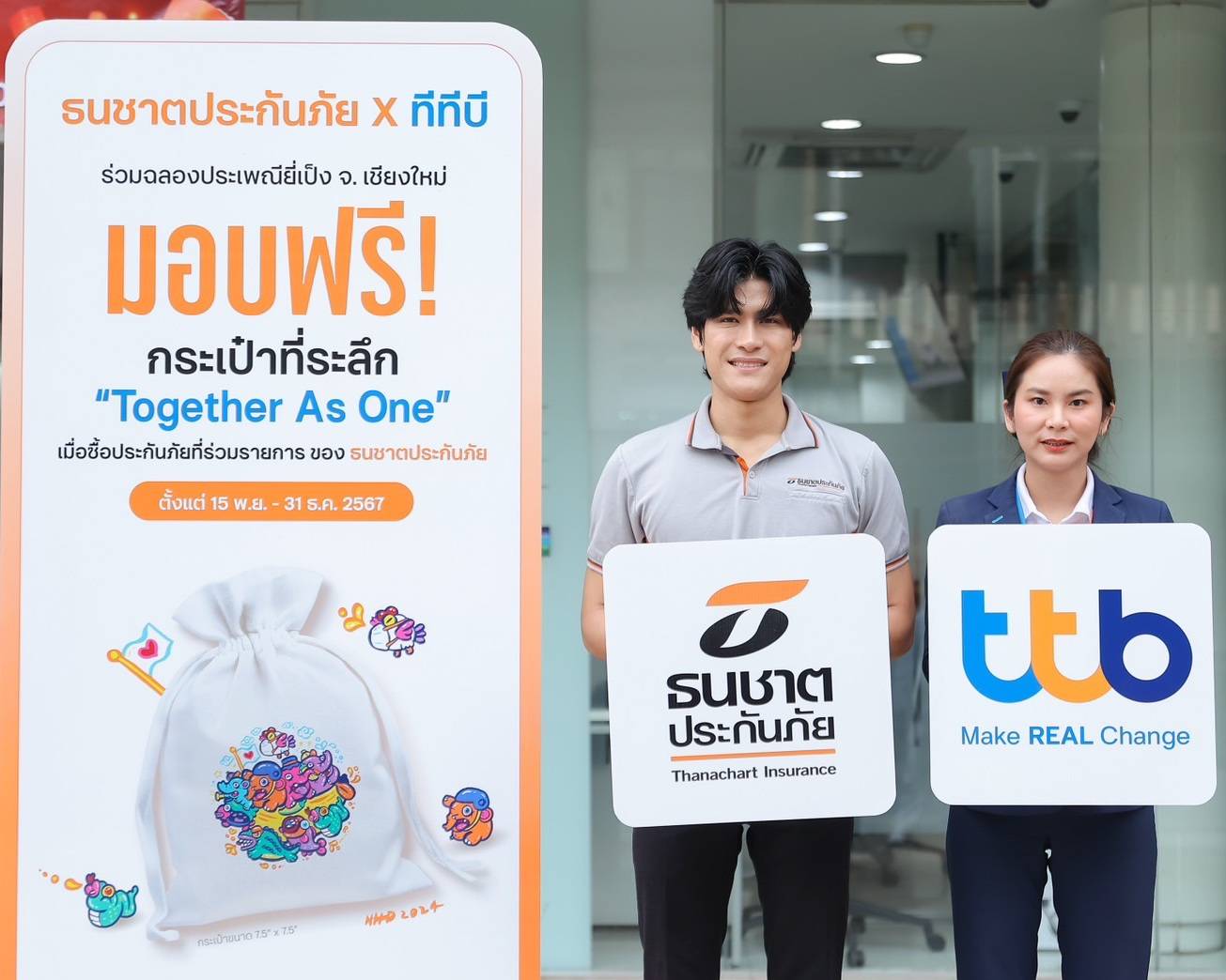 ธนชาตประกันภัย จัดกิจกรรม “ฮ่วมใจ๋ ฟื้นฟูเจียงใหม่ ไปตวยกั๋น” ชวนลูกค้าและคนไทยเป็นเจ้าของกระเป๋าผ้ารักษ์โลก คอลเล็คชั่นพิเศษ “Together as one” ลวดลายสุดคิวต์ ลิมิเต็ดอิดิชัน ผลงานออกแบบโดย แก๊ง-อนุกูล เหมาลา ศิลปินคนเมืองเชียงใหม่ ช่วยกันฟื้นฟูเชียงใหม่ช่วยกันลดโลกร้อน เปิดให้จองแล้วตั้งแต่วันนี้ถึง 31 ธ.ค.67 ผ่านช่องทางออนไลน์ของธนชาตประกันภัย รายได้หลังหักค่าใช้จ่ายมอบให้มูลนิธิพัฒนามหาวิทยาลัยเชียงใหม่ เพื่อช่วยเหลือผู้ประสบสาธารณภัย