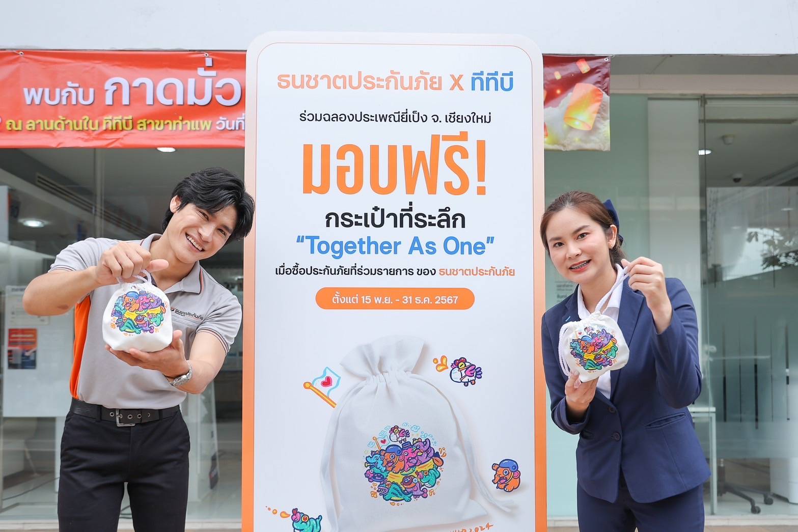 ขอเชิญชวนร่วมกิจกรรม “ฮ่วมใจ๋ ฟื้นฟูเจียงใหม่ ไปตวยกั๋น” สั่งซื้อกระเป๋าผ้า “Together as one” ในราคาใบละ 299 บาท สามารถสั่งจอง (Pre-Order) ได้ผ่าน QR-Code บนช่องทางออนไลน์ของธนชาตประกันภัย ทั้งเว็บไซต์ธนชาตประกันภัย www.thanachartinsurance.co.th และเฟซบุ๊กแฟนเพจ thanachartinsurance – tni หรือคลิกที่ลิงก์นี้ https://bit.ly/3Z3foAg ตั้งแต่วันนี้ – 25 พฤศจิกายน 2567 (ชำระเงินผ่านบัญชีมูลนิธิธนชาตเพื่อสังคมไทย) โดยจะได้รับสินค้าภายในเดือนมกราคม 2568