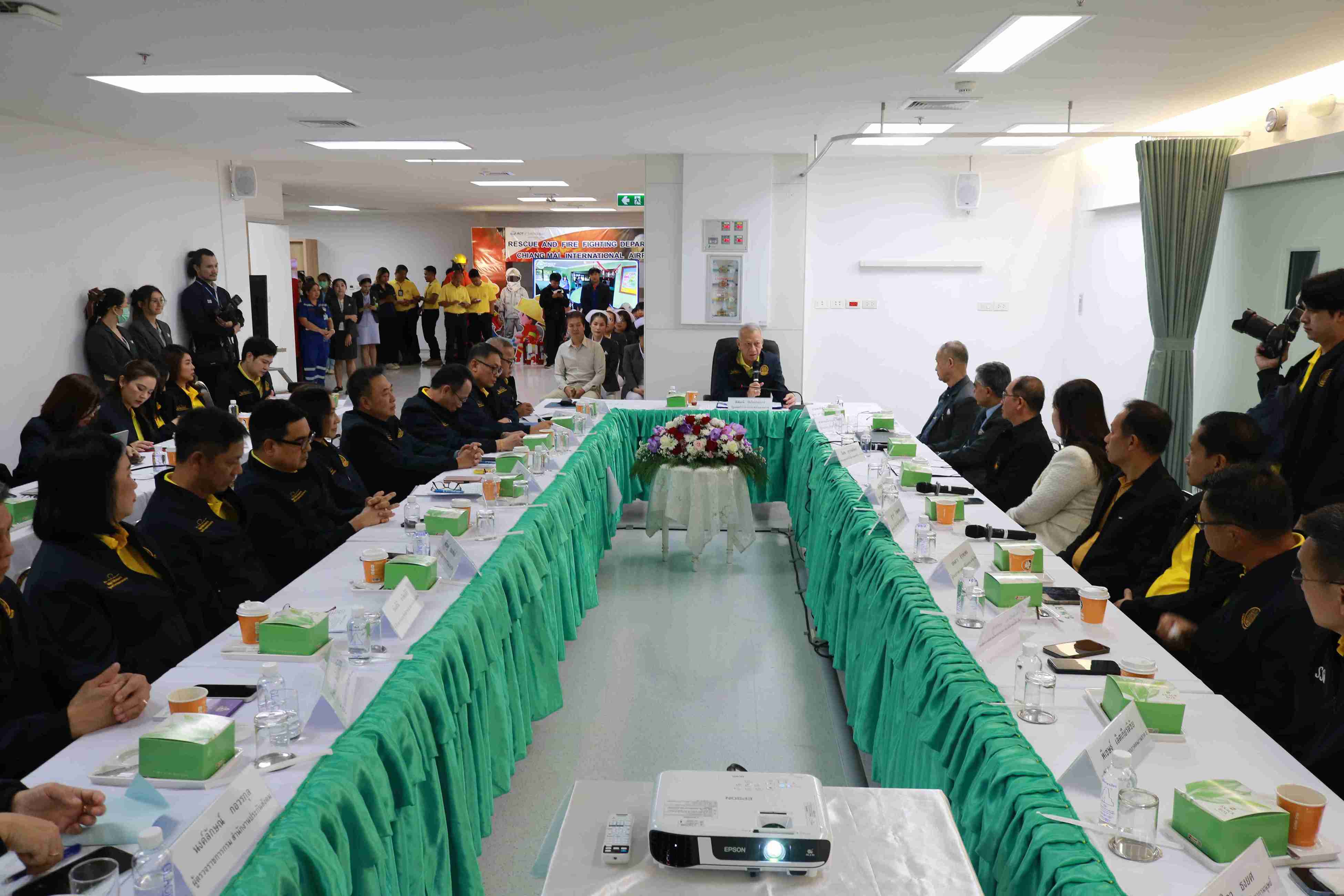 นอกจากนี้ เรือเอก สาโรจน์ คมคาย อธิบดีกรมสวัสดิการและคุ้มครองแรงงาน ได้กล่าวรายงาน การนำนโยบาย “สร้างวัฒนธรรมความปลอดภัย”ของ รมว.รง มาแก้ไขและป้องกันอุทกภัยในสถานประกอบกิจการ จังหวัดเชียงใหม่ รวมทั้ง นายธิเดช สุวรรณจันทร์ ประธานชมรมเจ้าหน้าที่ความปลอดภัยในการทำงาน นำเสนอแผนการจัดการและการป้องกันเมื่อเกิดเหตุอุทกภัยของสถานประกอบ กิจการจังหวัดเชียงใหม่ โดยมีผู้แทนจากโรงแรมแชงกรี-ลา เชียงใหม่ เข้าร่วมนำเสนอด้วย