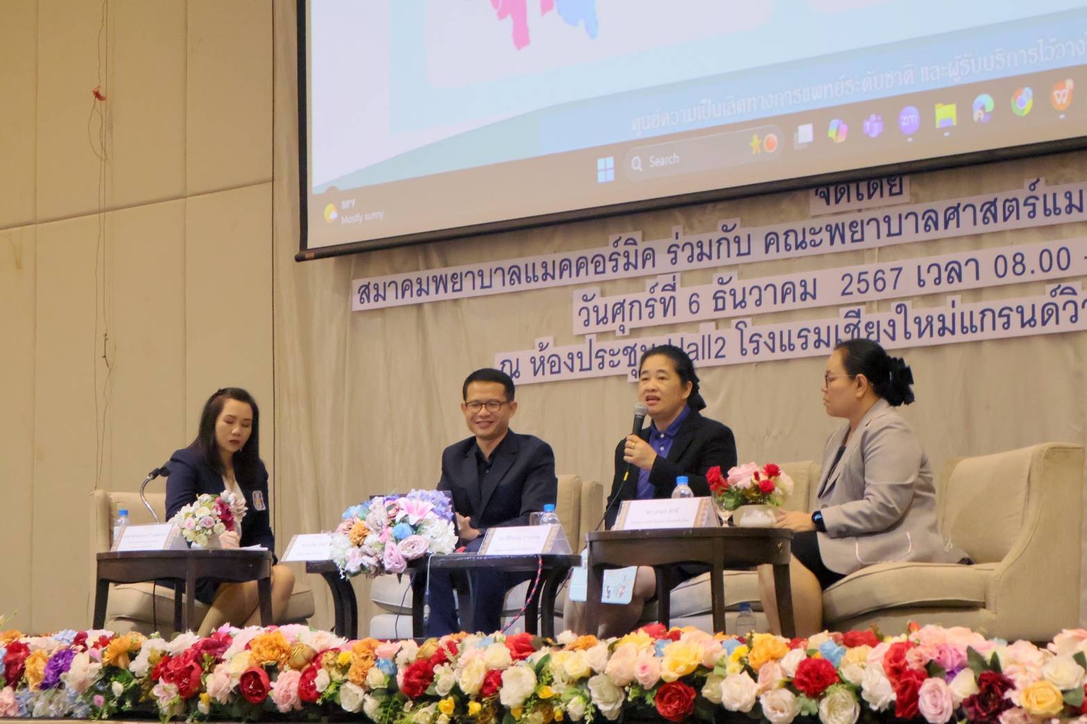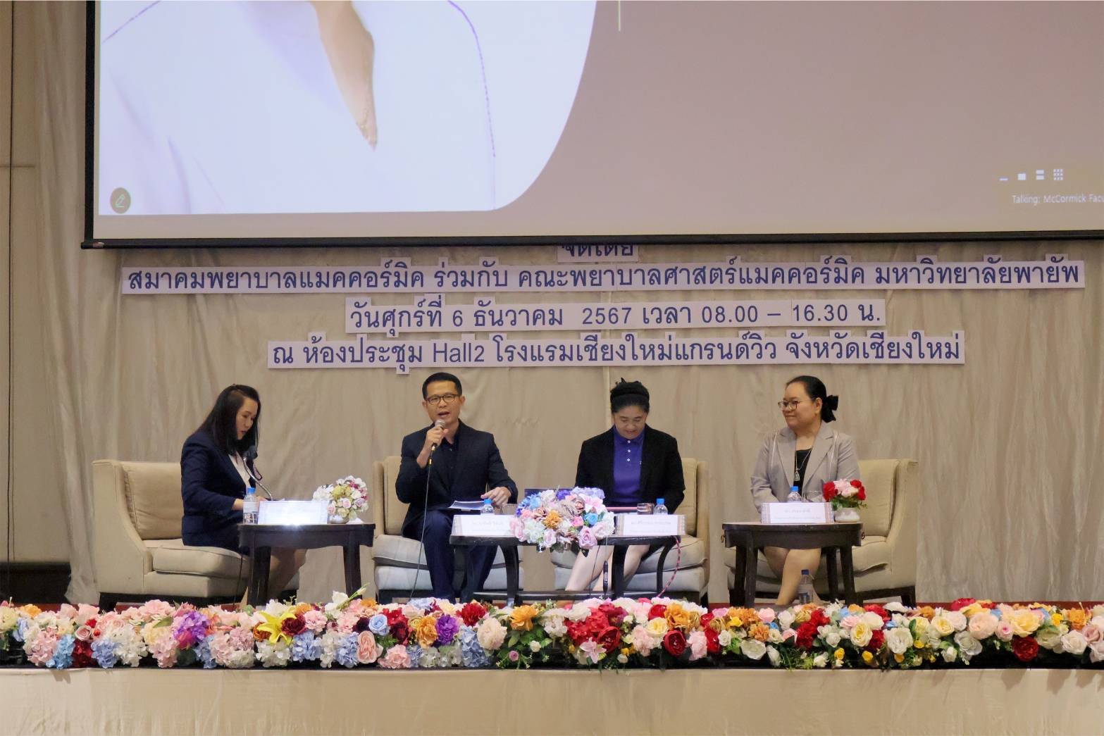 วันที่ 6 ธันวาคม 2567 คุณเกษร คำดี ประธานองค์กรพยาบาล โรงพยาบาลเชียงใหม่ ราม เข้าร่วมเสวนาวิชาการ ในหัวข้อ “การพยาบาลในยุคดิจิทัลก้าวหน้า เพื่อความเท่าเทียม” Nursing in an Era of Advancing Digital Health for Equality ณ โรงแรมเชียงใหม่แกรนด์วิว โดยสมาคมพยาบาลแมคคอร์มิค ร่วมกับคณะพยาบาลศาสตร์แมคคอร์มิค มหาวิทยาลัยพายัพ จัดขึ้นเพื่อส่งเสริมการพัฒนางานพยาบาลในยุคดิจิทัล และแลกเปลี่ยนองค์ความรู้เกี่ยวกับเทคโนโลยีในการดูแลผู้ป่วย รวมไปถึงการใช้แอพพลิเคชันสุขภาพบนมือถือ ช่วยให้การดูแลผู้ป่วยมีประสิทธิภาพมากยิ่งขึ้น