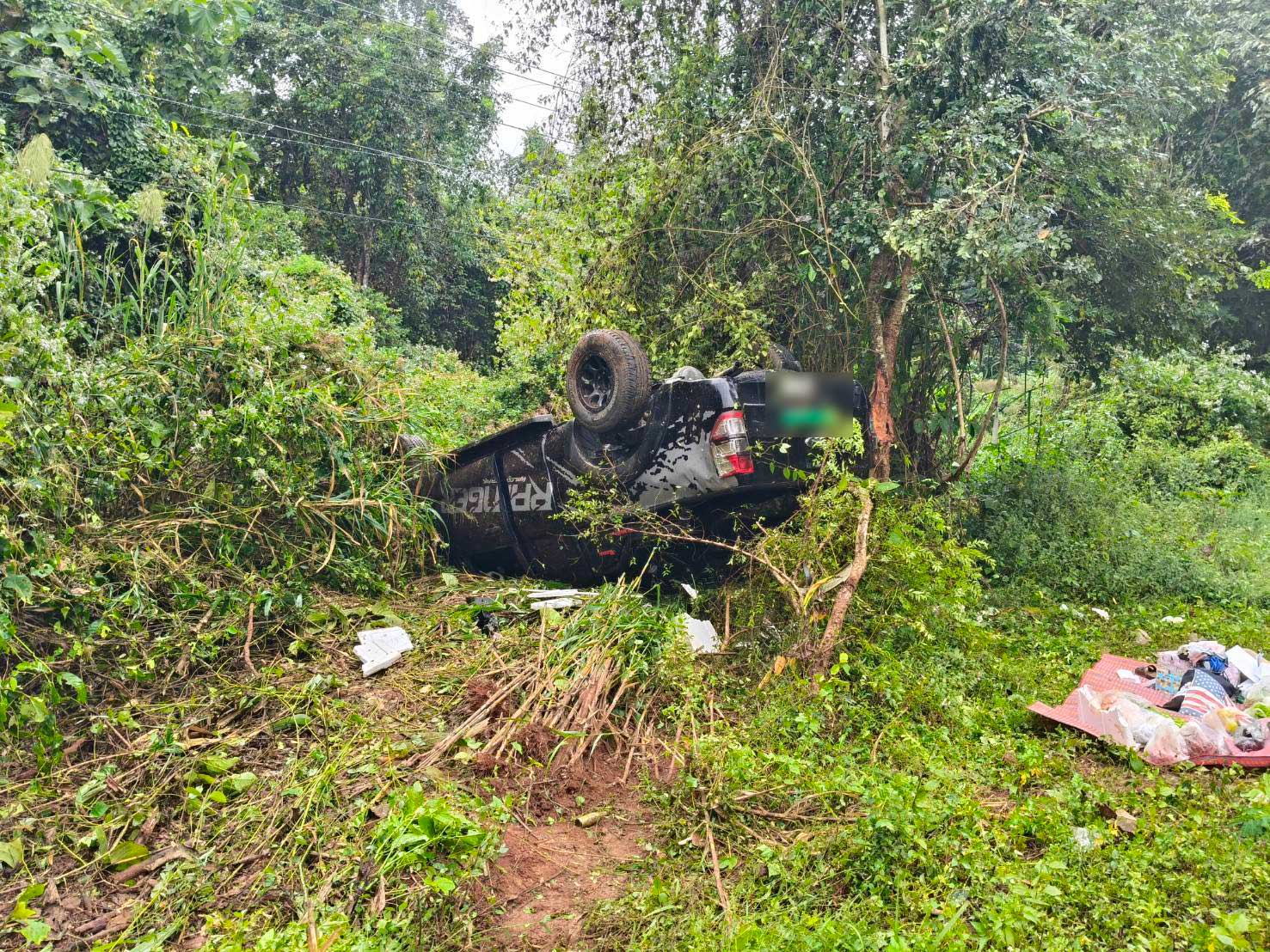 เหตุการณ์: ที่เกิดเหตุพบรถกระบะยี่ห้อ Ford สีดำ ทะเบียนกรุงเทพมหานคร พลิกคว่ำบริเวณทางโค้ง มีผู้บาดเจ็บจำนวน 4 ราย แบ่งเป็นผู้บาดเจ็บในระดับสีเหลือง 2 ราย และสีเขียว 2 ราย เจ้าหน้าที่กู้ชีพโหล่งขอดเร่งนำตัวผู้บาดเจ็บทั้งหมดส่งโรงพยาบาลแม่แตงเพื่อรับการรักษา