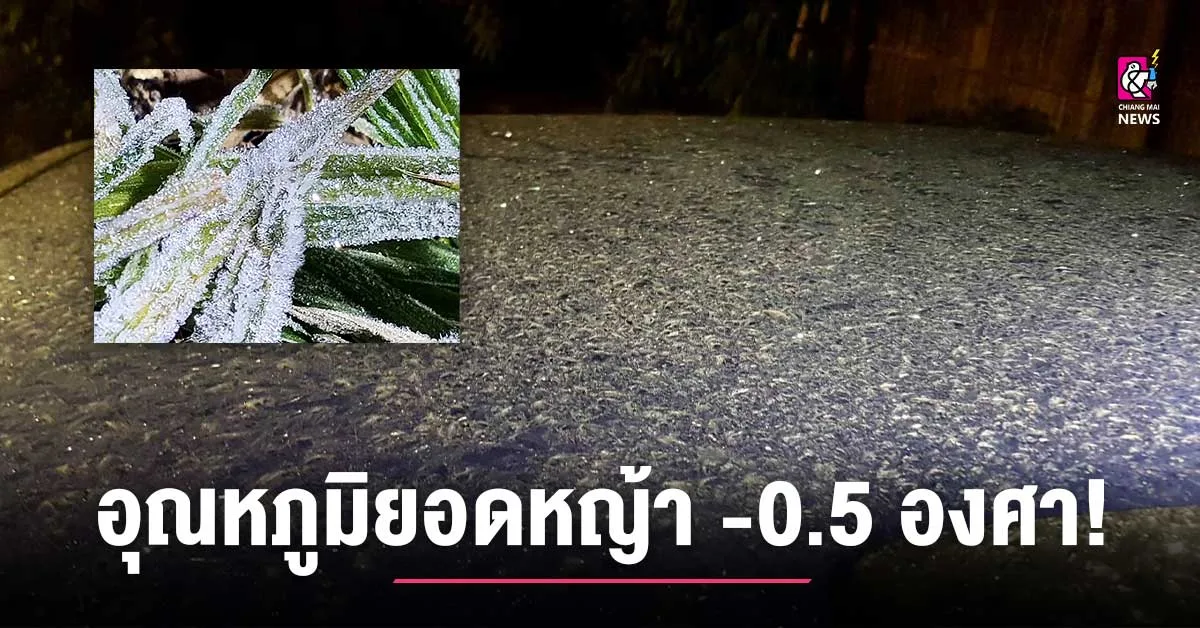 ยังปรากฏ “เหมยขาบ” หลายจุดที่ยอดดอยอินทนนท์ อุณหภูมิยอดหญ้า ติดลบ 0.5 องศา น้ำค้างแข็งเป็นเกร็ดเกาะเต็มหลังคารถ