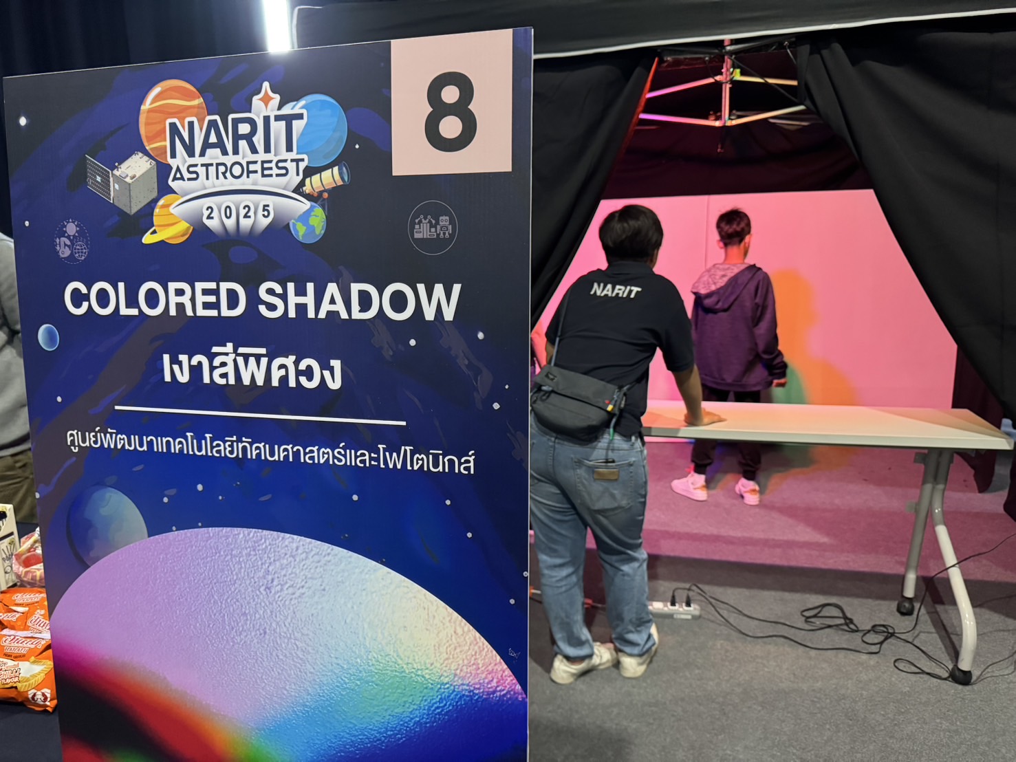 พบปะนักดาราศาสตร์ ตัวจริงเสียงจริง ผู้ศึกษาวิจัยเรื่องราวต่าง ๆ ที่แตกต่างกัน ตั้งแต่ดาวฤกษ์ ดาวเคราะห์นอกระบบสุริยะ กาแล็กซี หลุมดำ ไปจนถึงเอกภพ รวมถึงโบราณดาราศาสตร์ และซุ้มถ่ายภาพสุดพิศวงจากศูนย์ปฏิบัติการทัศนศาสตร์และโฟโตนิกส์ เวลา 09:00 – 17:00 น. ณ ห้องแอนโดรเมดา อาคารท้องฟ้าจำลองและนิทรรศการ ชั้น 2