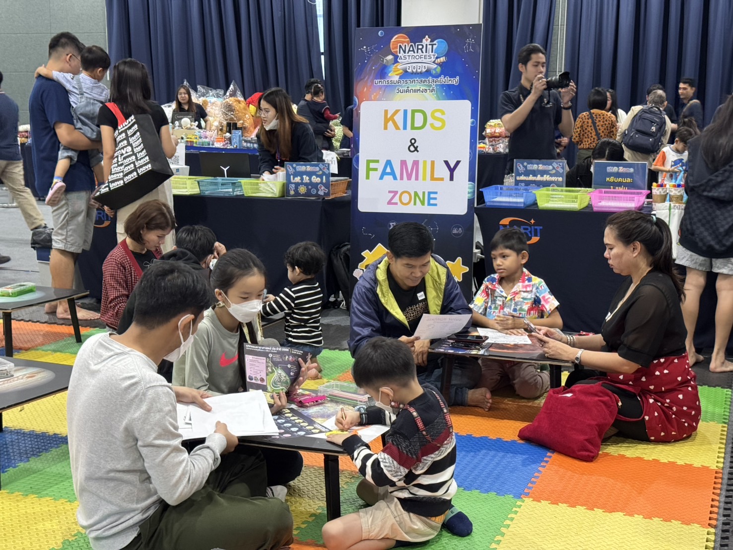 โซนกิจกรรมกลาง จัดเต็มกิจกรรมตลอดทั้งวัน ได้แก่ “NARIT Kids Zone” พื้นที่ปล่อยพลังความสร้างสรรค์ วาดภาพและระบายสีแต้มฝัน และ “NARIT Family Zone” เรียนรู้ท้องฟ้าจากการประดิษฐ์กลุ่มดาวเรืองแสง เวลา 09:00 – 17:00 น. ณ ห้องแอนโดรเมดา อาคารท้องฟ้าจำลองและนิทรรศการ ชั้น 2