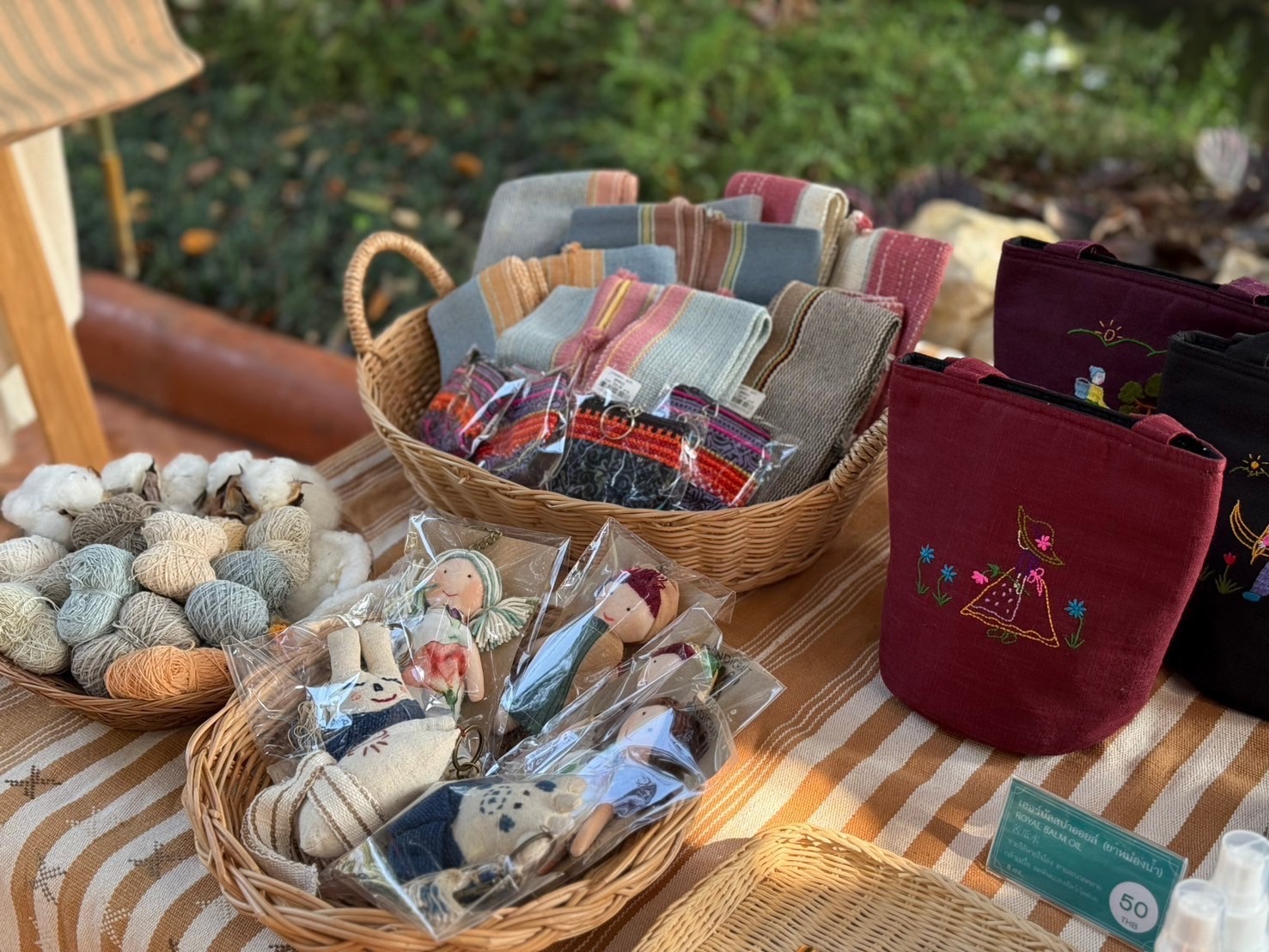 รวมทั้งการจัดแสดงผลิตภัณฑ์จากกัญชง ผ้าทอขนแกะ และผ้าย้อมสีธรรมชาติจากพืชท้องถิ่น ซึ่งมาจากโครงการป่าให้สีที่ศูนย์พัฒนาโครงการหลวงเลอตอ อำเภอแม่ระมาด จังหวัดตาก การจัดจำหน่ายสินค้าหัตถกรรมดีไซน์ใหม่ ๆ อาทิ กระเป๋า เสื้อกัญชงผสมฝ้าย เครื่องประดับเงิน ตุ๊กตาชาวเขา พวงกุญแจ รองเท้า ฯลฯ พิเศษทุกวันศุกร์บริเวณลานกลางแจ้งด้านข้างหอศิลปะหัตกรรมพื้นที่สูง มีกิจกรรมตลาดม่วนใจ๋ Craft Craft ตลาดนัดสินค้าหัตถกรรม งานแฮนด์เมดสุดชิคหลากหลายสวยงามจนเลือกไม่ถูก พิเศษไปกว่านั้นยังมีกิจกรรมWorkshop ให้ร่วมสนุกและได้แสดงฝีมือ ในราคาที่ย่อมเยา อีกด้วย