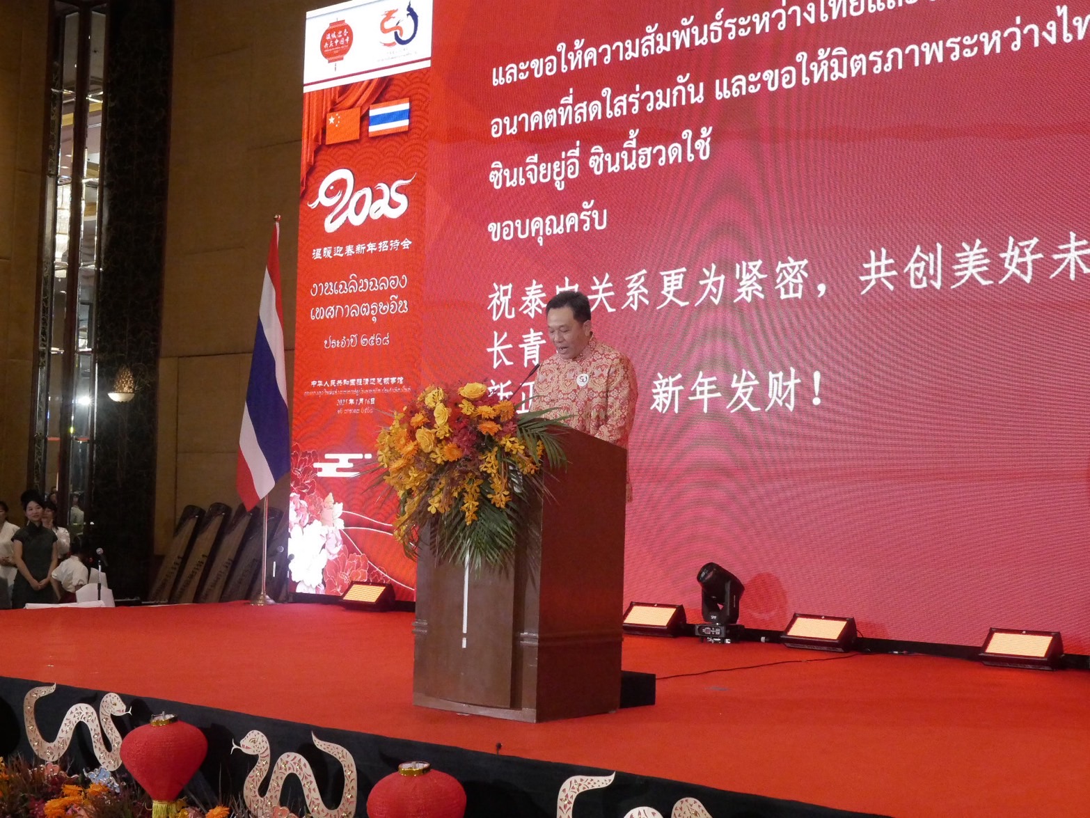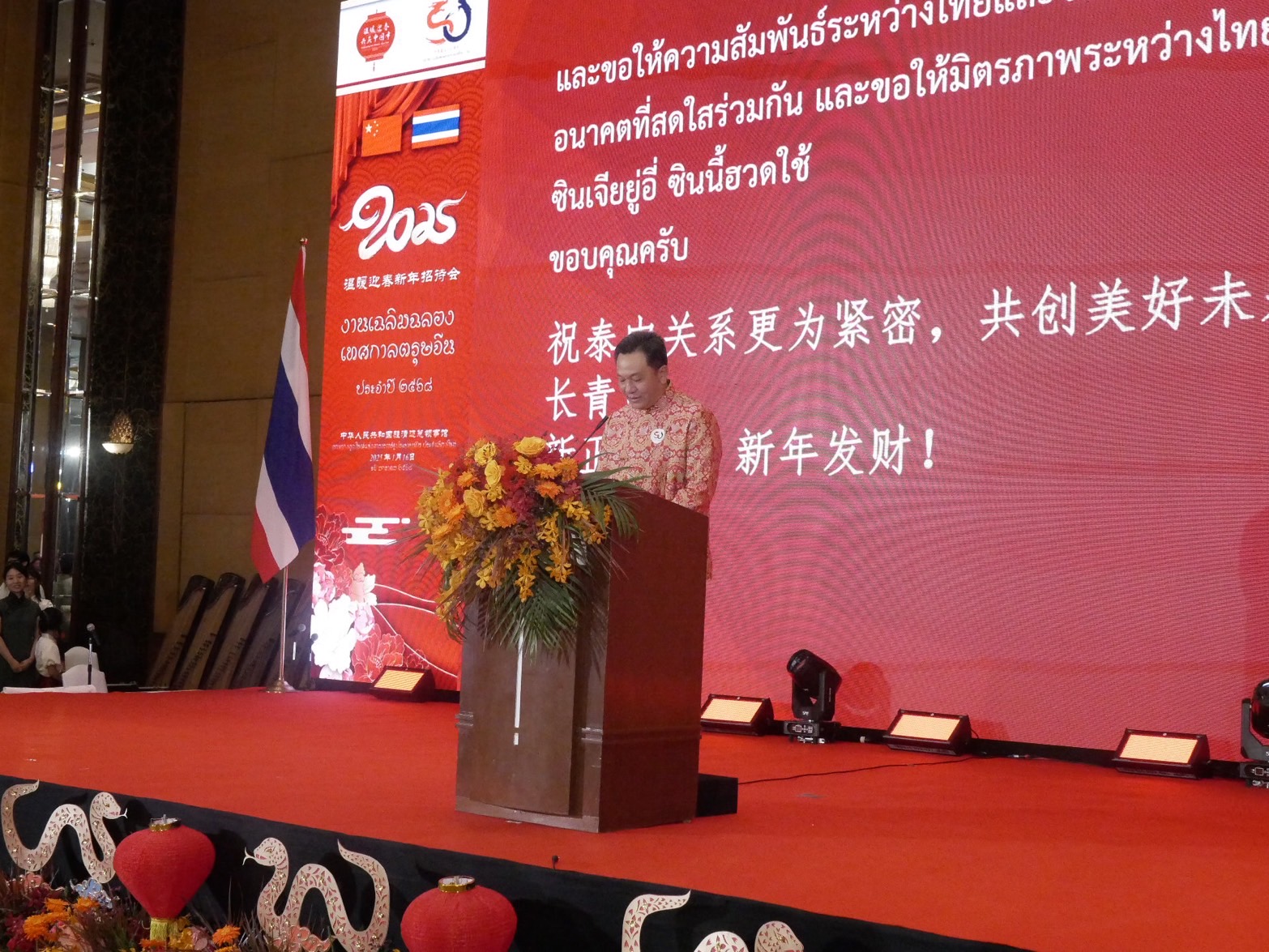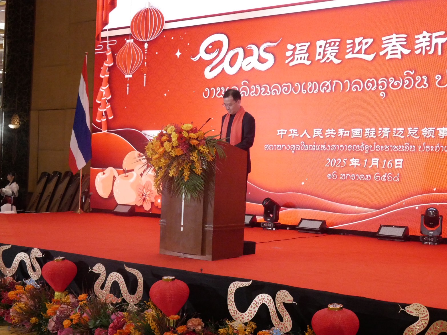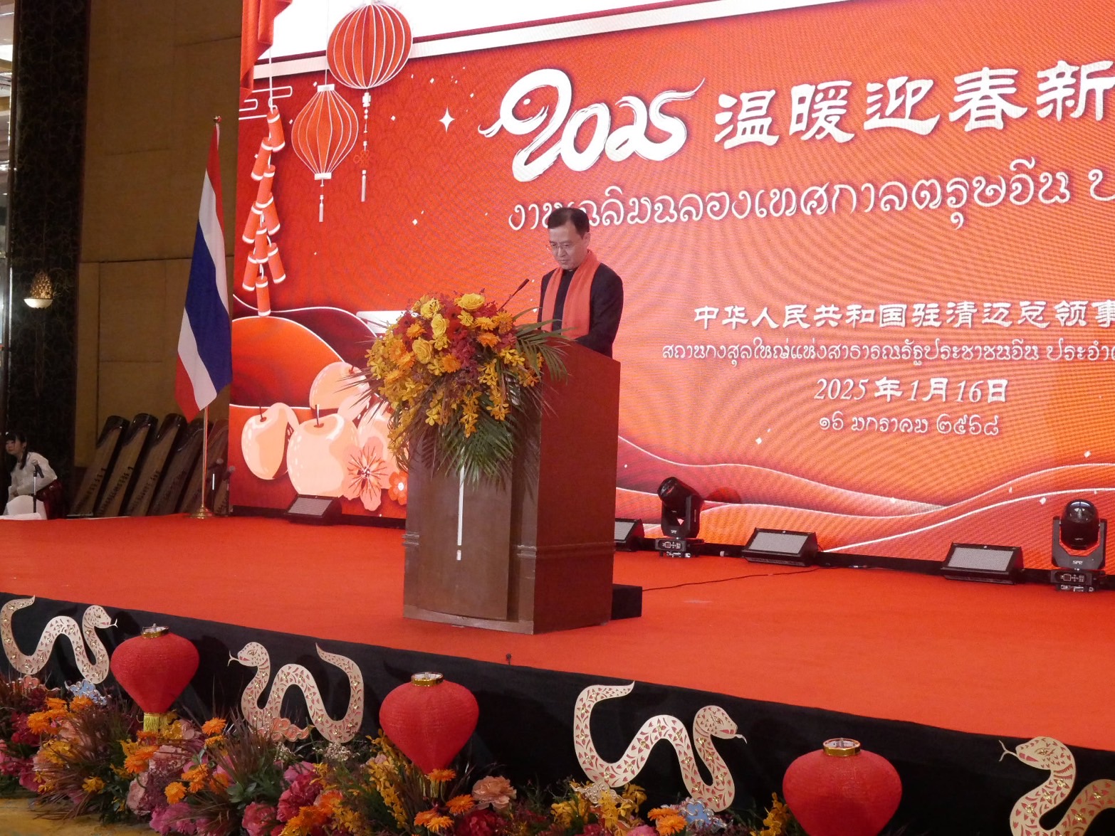 ซึ่งงานนี้ ทางนายเฉิน ไห่ผิง กงสุลใหญ่แห่งสาธารณรัฐประชาชนจีนประจำเชียงใหม่ ได้กล่าวว่า ในนามของกงสุลใหญ่จีนประจำเชียงใหม่ กระผมขอส่งความปราถนาจีนแก่ชาวจีนทุกท่านที่อยู่ในจังหวัดเชียงใหม่ ในวาระเทศกาลตรุษจีน กระผมหวังว่าทุกท่านจะได้สัมผัสถึงวัฒนธรรมจีน ที่มีการนำมาจัดแสดงในงานเลี้ยงครั้งนี้ รวมถึง จากการหารือระหว่างประธานาธิบดีสีจิ้นผิง กะบแพทองธาร ชินวัตร นายกรัฐมนตรี ได้กำหนดให้ปี พ.ศ. 2568 เป็นปีที่ฉลองวาระครบรอบ 50 ปี ความสัมพันธ์ระหว่างไทย – จีน และได้มีความยกระดับความร่วมมือในด้านต่างๆ ทั้งการท่องเที่ยว ผ่านนโยบายฟรีวีซ่า การร่วมมือปราบปรามคดีอาชญากรรมทางออนไลน์ ทางกงสุลใหญ่จีนประจำเชียงใหม่ พร้อมสนับสนุนความร่วมมือระหว่างสองประเทศ พร้อมขอให้มิตรภาพระหส่างไทย – จีน ยืนยงอย่างยาวนาน