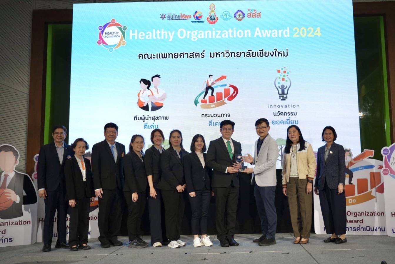 รศ.นพ.นเรนทร์ โชติรสนิรมิต ผู้อำนวยการโรงพยาบาลมหาราชนครเชียงใหม่ พร้อมด้วย รศ.พญ.สุรินทร์พร ลิขิตเสถียร รองคณบดีด้านทรัพยากรบุคคล คณะแพทยศาสตร์ มช. ผศ.พญ.จินต์จุฑา ภานุมาสวิวัฒน์ แพทย์อาชีวเวชศาสตร์ ภาควิชาเวชศาสตร์ชุมชน คณะแพทยศาสตร์ มช. และทีมงานหน่วยสร้างเสริมสุขภาพ ร่วมรับรางวัล Healthy Organization Award ประจำปี 2567 ซึ่งดำเนินการโดย เครือข่ายคนไทยไร้พุง ราชวิทยาลัย อายุรแพทย์แห่งประเทศไทย