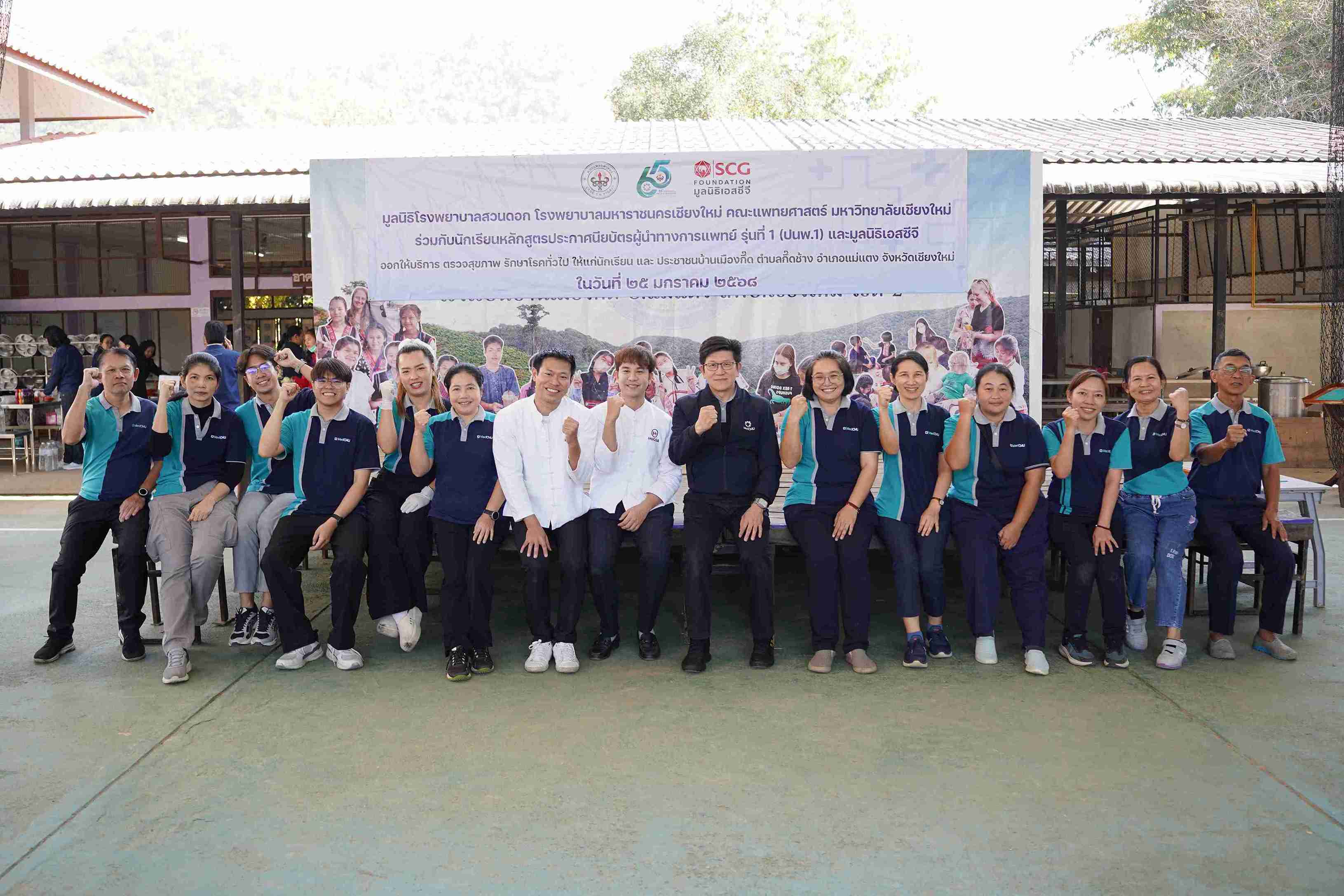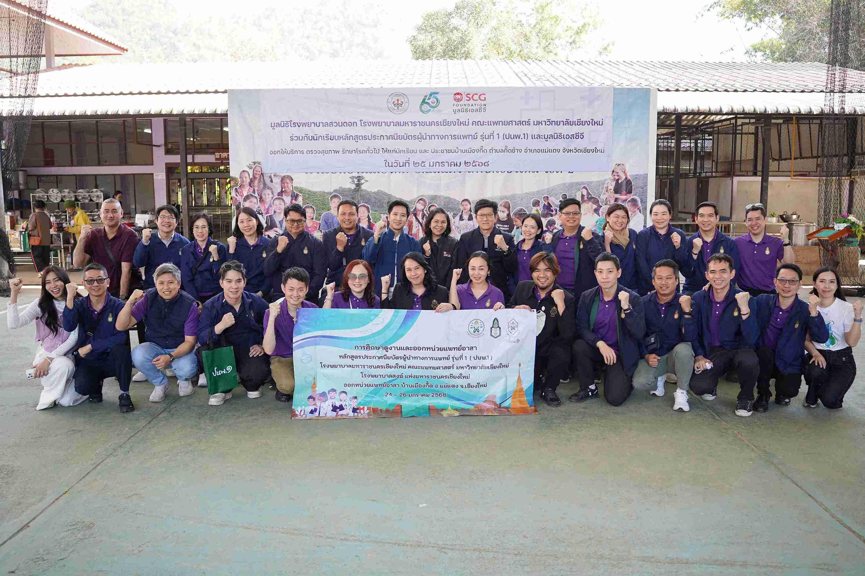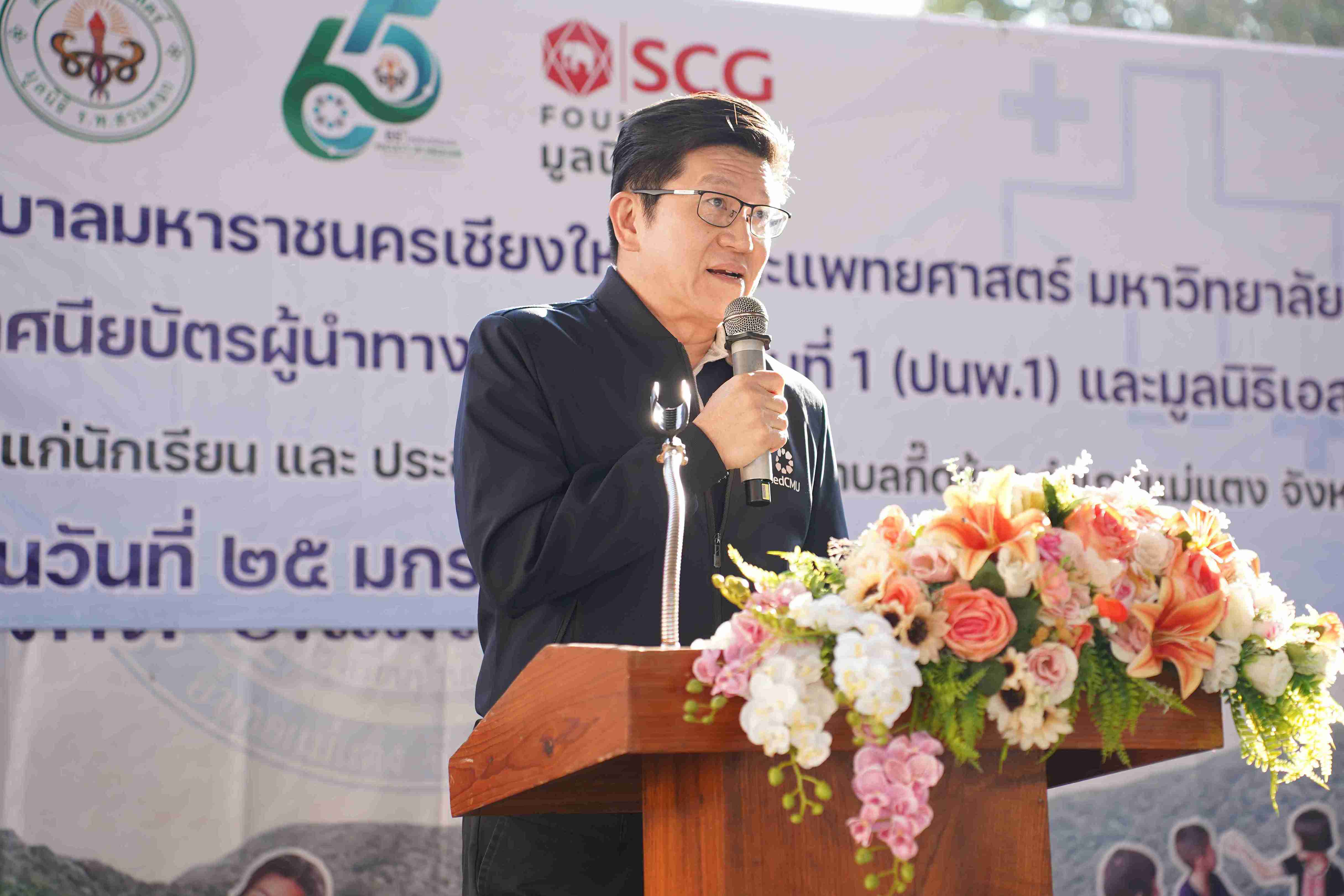 รศ.นพ.นเรนทร์ โชติรสนิรมิต ผู้อำนวยการโรงพยาบาลมหาราชนครเชียงใหม่ เป็นประธานในพิธีเปิด กิจกรรมการออกหน่วยแพทย์อาสา เนื่องในวาระครบรอบ 60 ปี มช. และ 65 ปี คณะแพทยศาสตร์ มช. ในพื้นที่ตำบลเมืองกึ๊ด อ.แม่แตง จ.เชียงใหม่ โดยร่วมกับมูลนิธิโรงพยาบาลสวนดอก โรงพยาบาลมหาราชนครเชียงใหม่ คณะแพทยศาสตร์ มช. พร้อมด้วย คณะดูงานหลักสูตรประกาศนียบัตรผู้นำทางการแพทย์ รุ่นที่ 1 (ปนพ.) แพทยสภา-สถาบันพระปกเกล้า และ คณะจิตอาสามูลนิธิเอสซีจี โดยมี รศ.พญ.รภัส พิทยานนท์ รองหัวหน้าภาควิชาอายุรศาสตร์ ประธานฝ่ายการศึกษาหลังปริญญาคณะแพทยศาสตร์ จุฬาลงกรณ์ มหาวิทยาลัย และประธานบ้าน ปนพ.1 และ คุณสุวิมล จิวาลักษณ์ กรรมการและผู้จัดการมูลนิธิเอสซีจี ร่วมกล่าวรายงาน โดยมี รศ.นพ.อดิศักดิ์ ตันติวรวิทย์ หัวหน้าศูนย์ปลูกถ่ายเซลล์ต้นกำเนิดเม็ดเลือด ภาควิชาอายุรศาสตร์ คณะแพทยศาสตร์ มช. และ อ.นพ.วิศว อุบลเจริญ แพทย์ประจำโรงพยาบาลสงฆ์แห่งโรงพยาบาลมหาราชนครเชียงใหม่ ร่วมภายในกิจกรรม