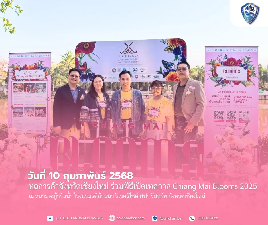 วันที่ 10 กุมภาพันธ์ 2568 หอการค้าจังหวัดเชียงใหม่ โดย นายจุลนิตย์ วังวิวัฒน์ ประธานกรรมการ ร่วมเป็นเกียรติในพิธีเปิดเทศกาล Chiang Mai Blooms 2025 ณ สนามหญ้าริมน้ำ โรงแรมรติล้านนา ริเวอร์ไซด์ สปา รีสอร์ท จังหวัดเชียงใหม่