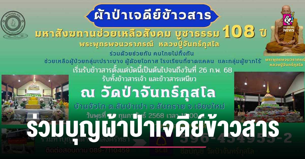 ร่วมด้วยช่วยกัน คนไทยไม่ทิ้งกัน ช่วยเหลือกลุ่มเปราะบาง กลุ่มผู้ป่วยติดเตียง โรงเรียนที่ขาดแคลน และกลุ่มผู้ยากไร้ ณ วัดป่าจันทร์กุสโล (ขัวโก) ต.สันป่าเปา อ.สันทราย จ.เชียงใหม่