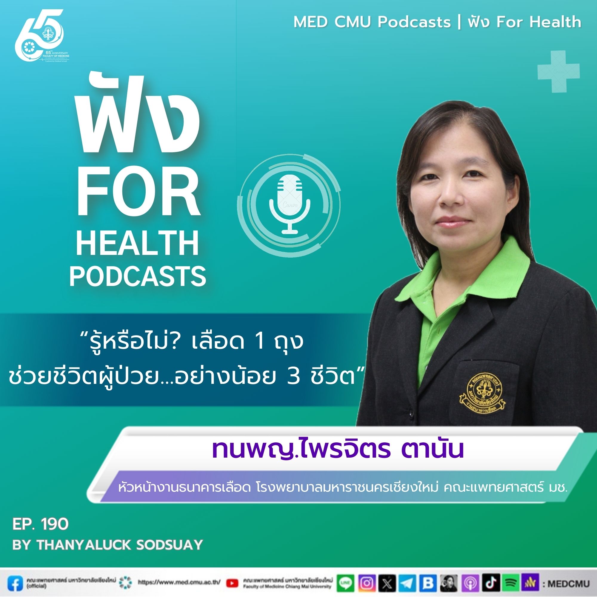 MED CMU ฟัง for health EP.190 “รู้หรือไม่? เลือด 1 ถุง ช่วยชีวิตผู้ป่วย…อย่างน้อย 3 ชีวิต”