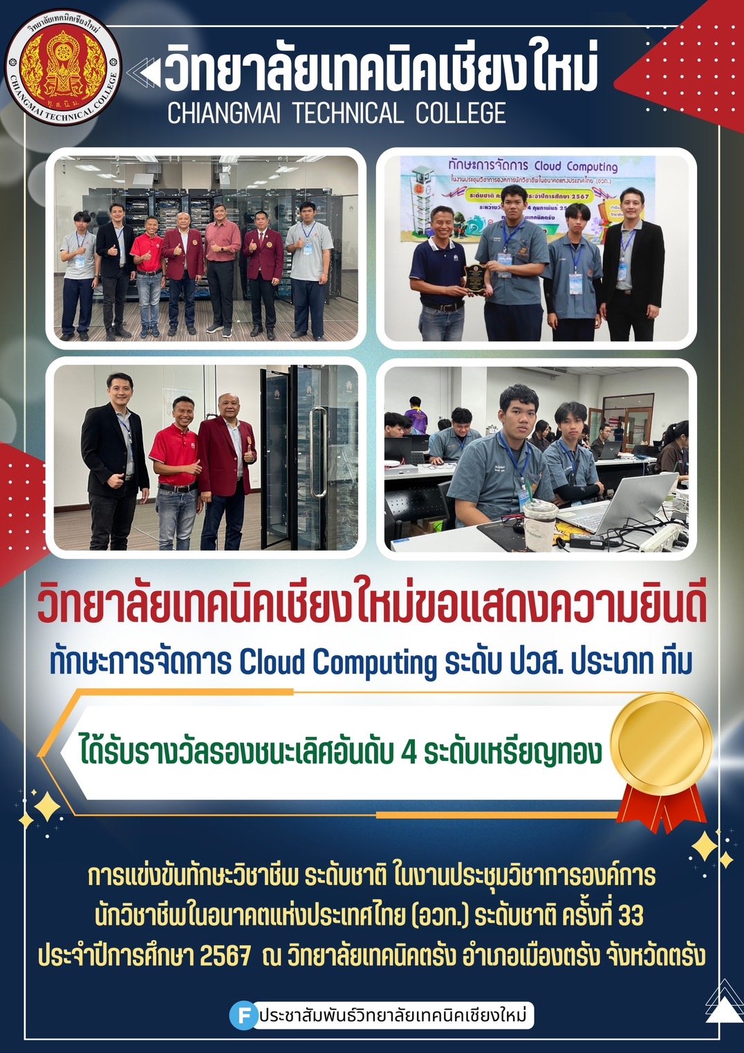2.ทักษะการจัดการ Cloud Computing ระดับ ปวส.ประเภททีม รองชนะเลิศอันดับ 4