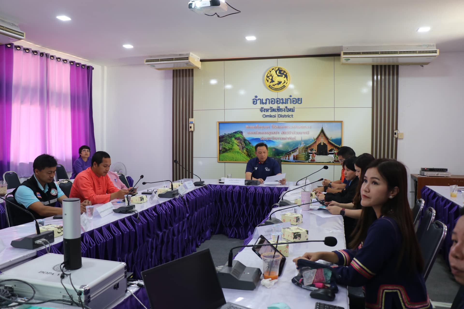 19 ก.พ. 68 ที่ ศูนย์อำนวยการป้องกันและแก้ไขปัญหาไฟป่าหมอกควัน และฝุ่นละอองขนาดเล็ก PM 2.5 อำเภออมก๋อย ณ ที่ว่าการอำเภออมก๋อย จังหวัดเชียงใหม่ นายนิรัตน์ พงษ์สิทธิถาวร ผู้ว่าราชการจังหวัดเชียงใหม่ เป็นประธานประชุมขับเคลื่อนโครงการป้องกันและแก้ไขปัญหาไฟป่าหมอกควันและฝุ่นละอองขนาดเล็ก PM 2.5 อย่างมีส่วนร่วมภายใต้บริบทของพื้นที่ โดยองค์กรปกครองส่วนท้องถิ่นจังหวัดเชียงใหม่ ประจำปีงบประมาณ พ.ศ. 2568 โดยมีองค์กรปกครองส่วนท้องถิ่น ทั้งเทศบาลนคร เทศบาลตำบล อบต. รวม 104 แห่ง เข้าร่วมประชุมผ่านทางระบบออนไลน์