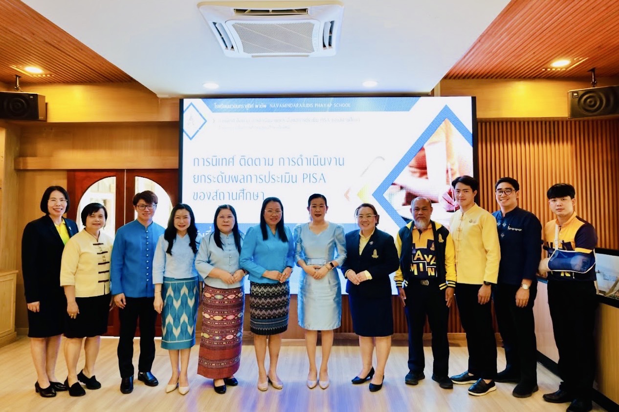 ในการนี้ ดร.ธาราทิพย์ วงษ์บรรณะ ได้มอบหมายให้นางสาวธัญชนก คำวินิจ รองผู้อำนวยการโรงเรียนนวมินทราชูทิศ พายัพ พร้อมด้วยครูฝ่ายบริหารวิชาการ และครูแกนนำ PISA ระดับสถานศึกษา ได้นำเสนอแนวทางการดำเนินงานยกระดับคุณภาพการเสริมสร้างสมรรถนะผู้เรียนตามแนวทางการประเมินนานาชาติ (PISA) ทั้งการใช้แบบฝึกความฉลาดรู้ สพฐ. การฝึกทักษะคอมพิวเตอร์ของนักเรียน การทดลองสอบของนักเรียนชั้นมัธยมศึกษาปีที่ 2 และการเข้าอบรมผ่านระบบ PISA On Demand รวมถึงแลกเปลี่ยนประเด็นปัญหาและอุปสรรคในการดำเนินงาน นอกจากนี้ยังได้ร่วมแลกเปลี่ยนเรียนรู้และสะท้อนผลการดำเนินงานร่วมกับคณะนิเทศติดตามในครั้งนี้ เพื่อให้การขับเคลื่อนเป็นไปได้อย่างมีประสิทธิภาพต่อไป