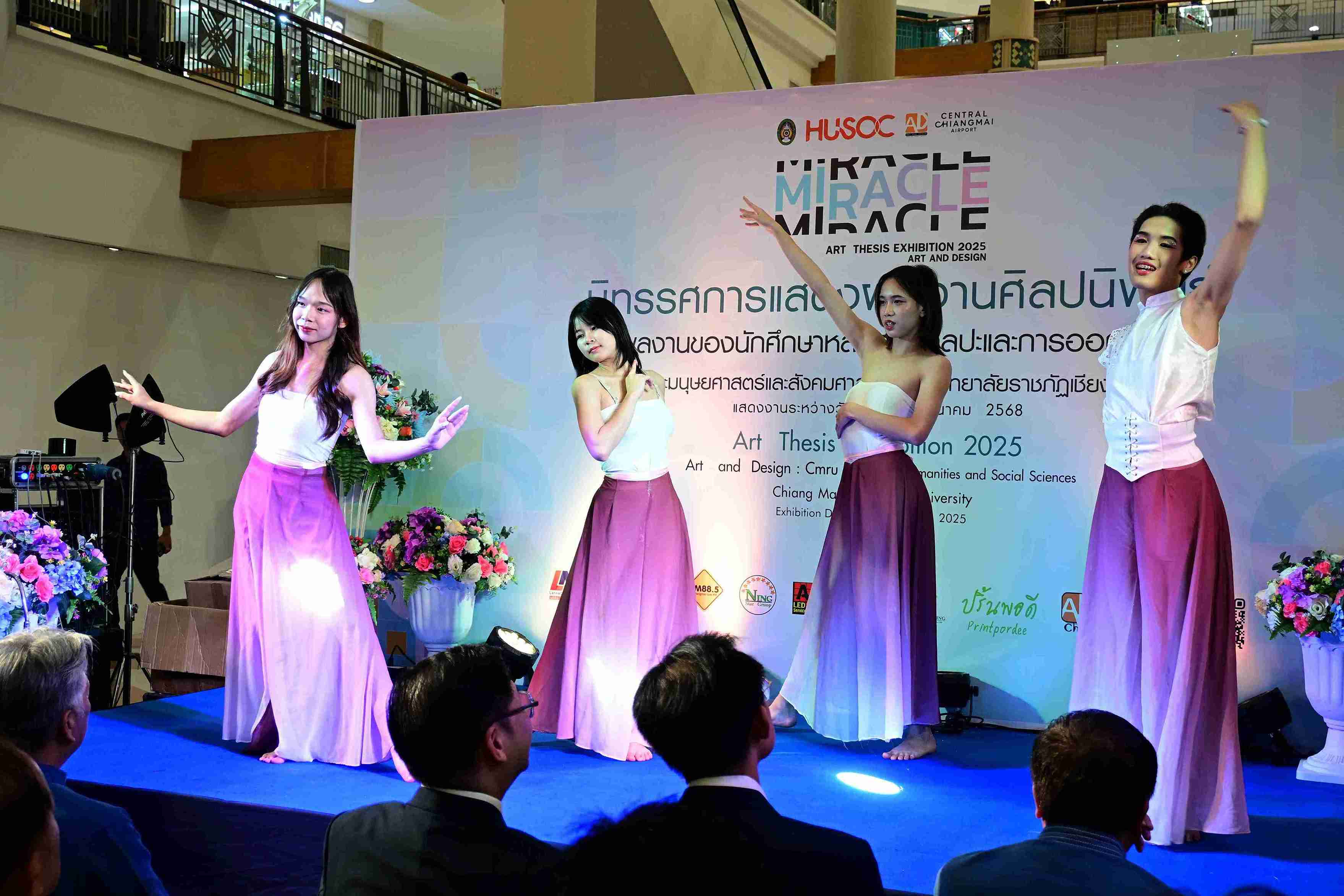 สองพิธีกรดำเนินรายการ นายอานนท์ ผัดแปง และนางสาวเสาวลักษณ์ สามแก้ว มี นางสาว ตรีชฎา ยอด นักศึกษาตัวแทนนำกล่าวรายงาน ได้รับเกียรติจาก รองศาสตราจารย์ ดร.ชาตรี มณีโกศล รักษาราชการแทนอธิการบดี มหาวิทยาลัยราชภัฏเชียงใหม่ เป็นประธานกล่าวเปิดงานให้โอวาท ร่วมมอบภาพเขียนประธานในพิธี และถ่ายภาพหมู่ ชมการแสดงเปิดงานโดย โดยนักศึกษาหลักสูตรศิลปะการแสดง คณะมนุษยศาสตร์และสังคมศาสตร์ ควบคุมการแสดงโดย อาจารย์ ดร.ไกรลาส จิตรกุล ประธานหลักสูตรศิลปะการแสดง