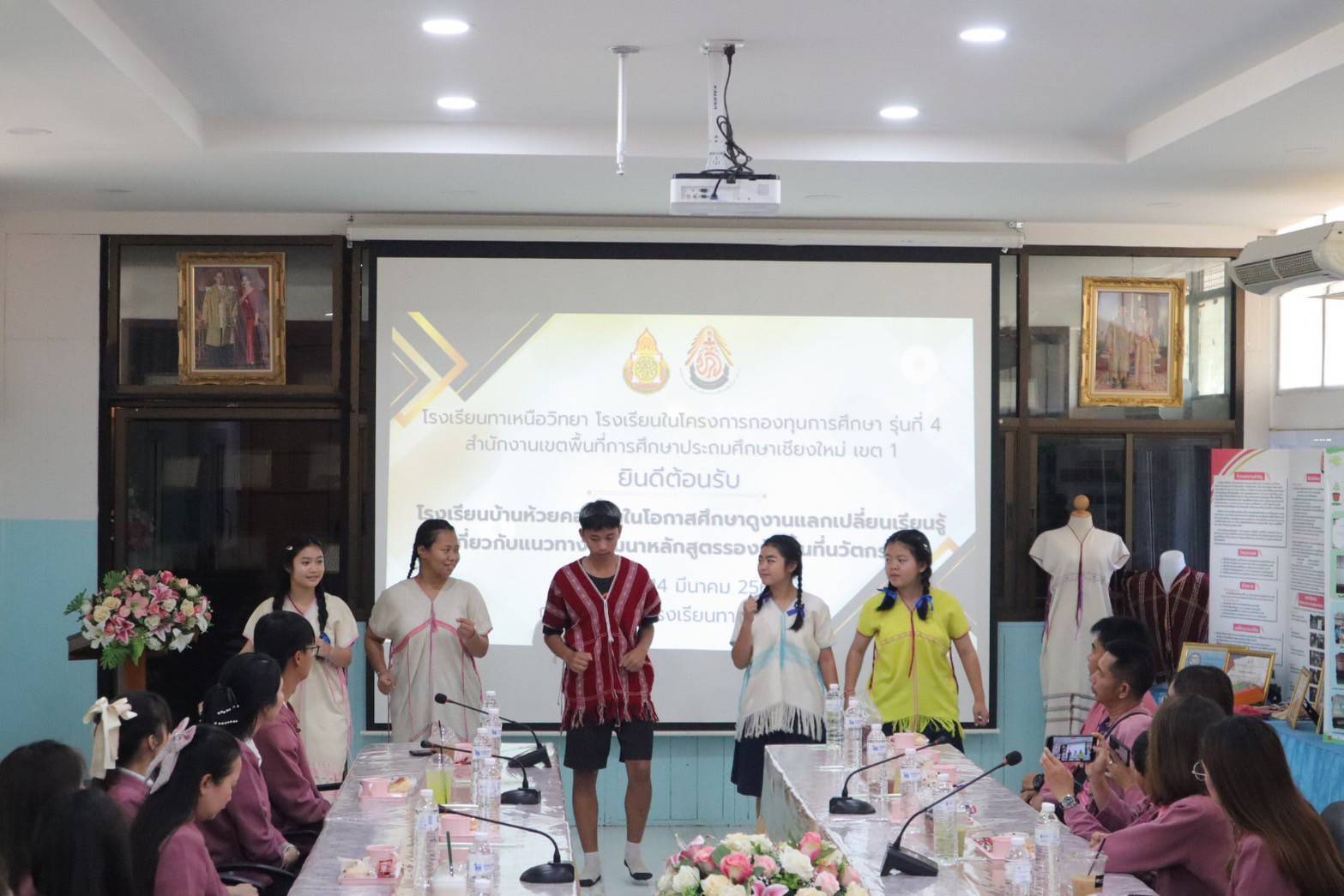 วันศุกร์ที่ 14 มีนาคม 2568 โรงเรียนทาเหนือวิทยา โรงเรียนในโครงการกองทุนการศึกษารุ่นที่ 4 สำนักงานเขตพื้นที่การศึกษาประถมศึกษาเชียงใหม่ เขต 1 นำโดยนายเกียรติศักดิ์ ชัยยาณะ ผู้อำนวยการโรงเรียนทาเหนือวิทยา พร้อมด้วยคณะครูและนักเรียน ให้การต้อนรับโรงเรียนบ้านห้วยคอกหมู สำนักงานเขตพื้นที่การศึกษาประถมศึกษาเชียงใหม่ เขต 3 นำโดยนายชวลิต ชัยชนะ ผู้อำนวยการโรงเรียนบ้านห้วยคอกหมู พร้อมด้วยคณะครู ในโอกาสศึกษาดูงานแนวทางพัฒนาหลักสูตรรองรับพื้นที่นวัตกรรมจังหวัดเชียงใหม่ ณ โรงเรียนทาเหนือวิทยา อำเภอแม่ออน จังหวัดเชียงใหม่