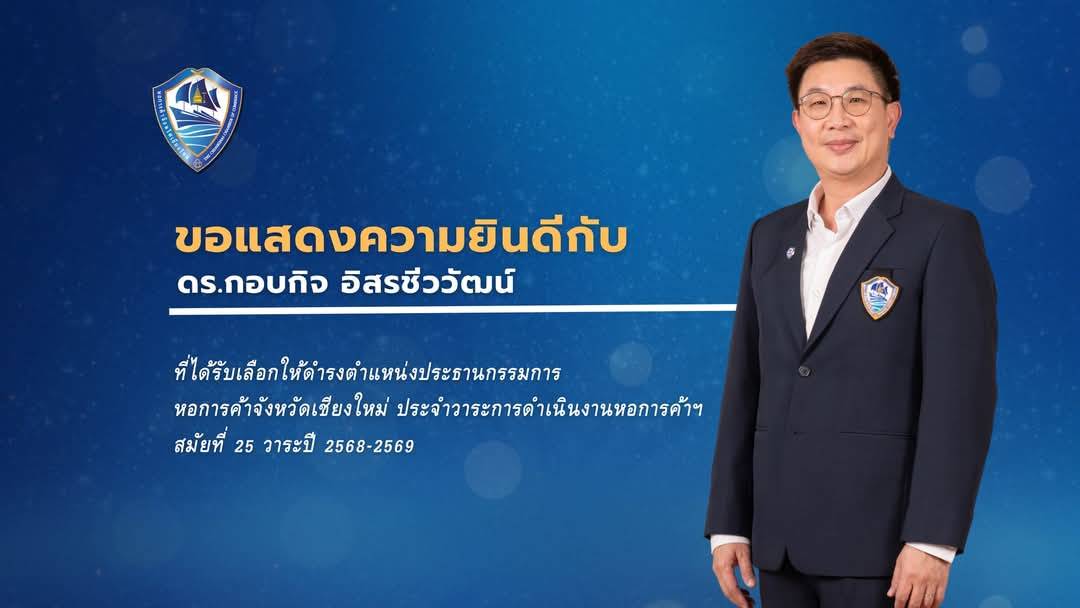 หอการค้าจังหวัดเชียงใหม่ ขอแสดงความยินดีกับ ดร.กอบกิจ อิสรชีววัฒน์ ที่ได้รับเลือกให้ดำรงตำแหน่งประธานกรรมการหอการค้าจังหวัดเชียงใหม่ ประจำวาระการดำเนินงานหอการค้าฯ สมัยที่ 25 วาระปี 2568-2569