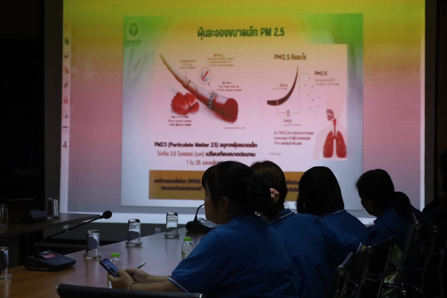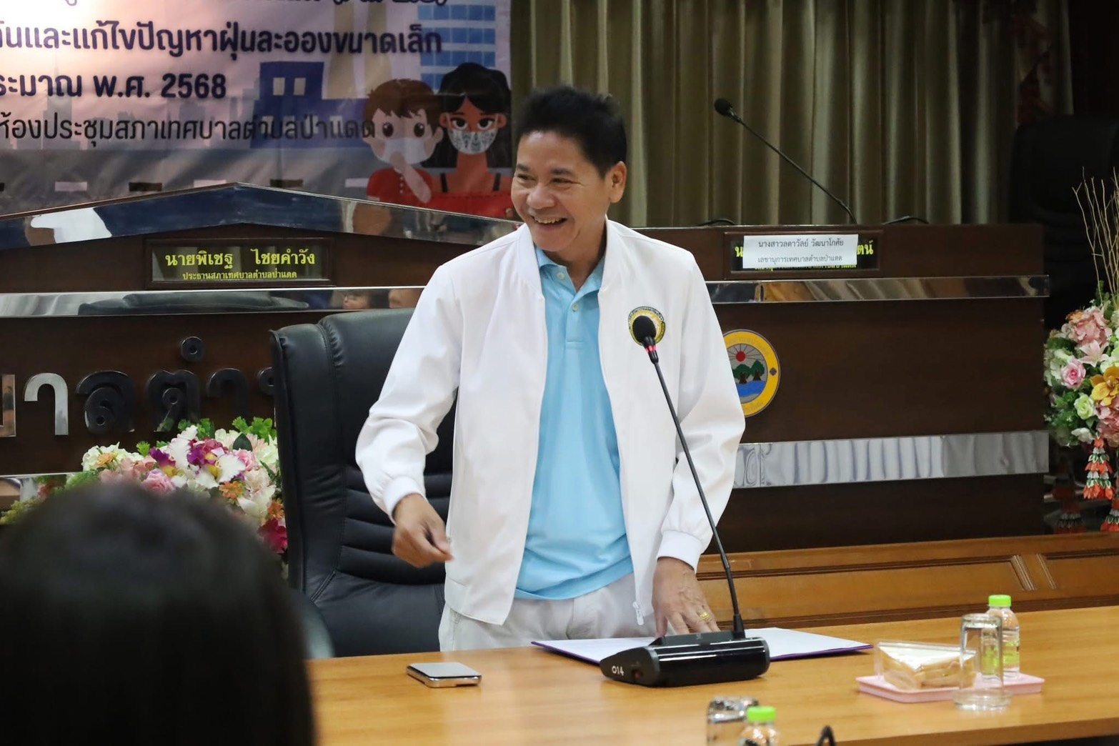 วันที่ 21 มีนาคม 2568 นายแพทย์นิธิรัตน์ บุญตานนท์ ผู้อำนวยการศูนย์อนามัยที่ 1 เชียงใหม่ มอบหมายให้กลุ่มพัฒนาอนามัยสิ่งแวดล้อม ให้ความรู้เพื่อสร้างความตระหนักถึงผลกระทบของฝุ่นละอองขนาดเล็ก PM2.5 ณ เทศบาลตำบลป่าแดด อ.เมือง จ.เชียงใหม่ โดยมี ดร.รุ่งปรีชา ปั๋นแก้ว นายกเทศมนตรีตำบลป่าแดด เป็นประธานกล่าวเปิดการประชุม และนางสาวลดาวัลย์ วัฒนาโกศัย ปลัดเทศบาลตำบลป่าแดด เป็นผู้กล่าวรายงาน ผู้ร่วมประชุมประกอบด้วย สมาชิกสภาเทศบาล หัวหน้าส่วนราชการ เจ้าหน้าที่ และอาสาสมัครสาธารณสุขในพื้นที่ กิจกรรมประกอบด้วย การให้ความรู้เรื่องผลกระทบต่อสุขภาพจากการรับสัมผัสฝุ่นละอองขนาดเล็ก PM 2.5 แนวทางป้องกันผลกระทบ การจัดทำห้องปลอดฝุ่น การใช้งานมุ้งสู้ฝุ่น เพื่อสร้างความรอบรู้ในการปฏิบัติเพื่อป้องกันและลดผลกระทบต่อสุขภาพในช่วงวิกฤตฝุ่นควัน