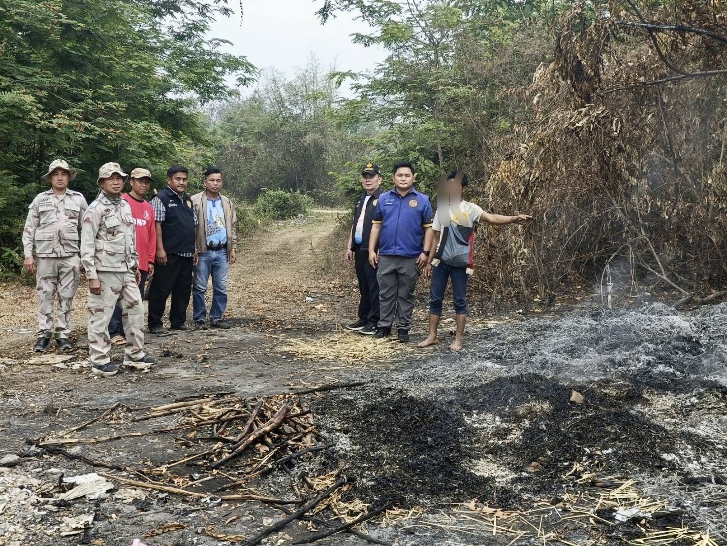 วันที่ 6 เม.ย. 2568 เวลา 10.30 น. ว่าที่ร้อยตรี นพรัตน์ ศุภกิจโกศล นายอำเภอฝาง/ผู้อำนวยการศูนย์บัญชาการป้องกันและแก้ไขปัญหาไฟป่า หมอกควัน และฝุ่นละอองขนาดเล็ก (pm 2.5) อำเภอฝาง มอบหมายให้ นายศตวรรษ อภิวงค์ ปลัดอำเภอฝ่ายความมั่นคง พร้อมด้วย สมาชิก อส. ร้อย.อส.อ.ฝาง 3 ลาดตระเวนป้องกันไฟป่าในพื้นที่รับผิดชอบ จนกระทั่งเวลา 11.30 น. ได้รับแจ้งจากนายอุดร ปันชุม กำนันตำบลเวียง ว่าพบเห็นชายจุดเผากองขยะบริเวณข้างทางสาธารณะ ในหมู่บ้านเด่นหลวง หมู่ที่ 13 ตำบลเวียง อำเภอฝาง จังหวัดเชียงใหม่ จึงได้เข้าไปตรวจสอบ