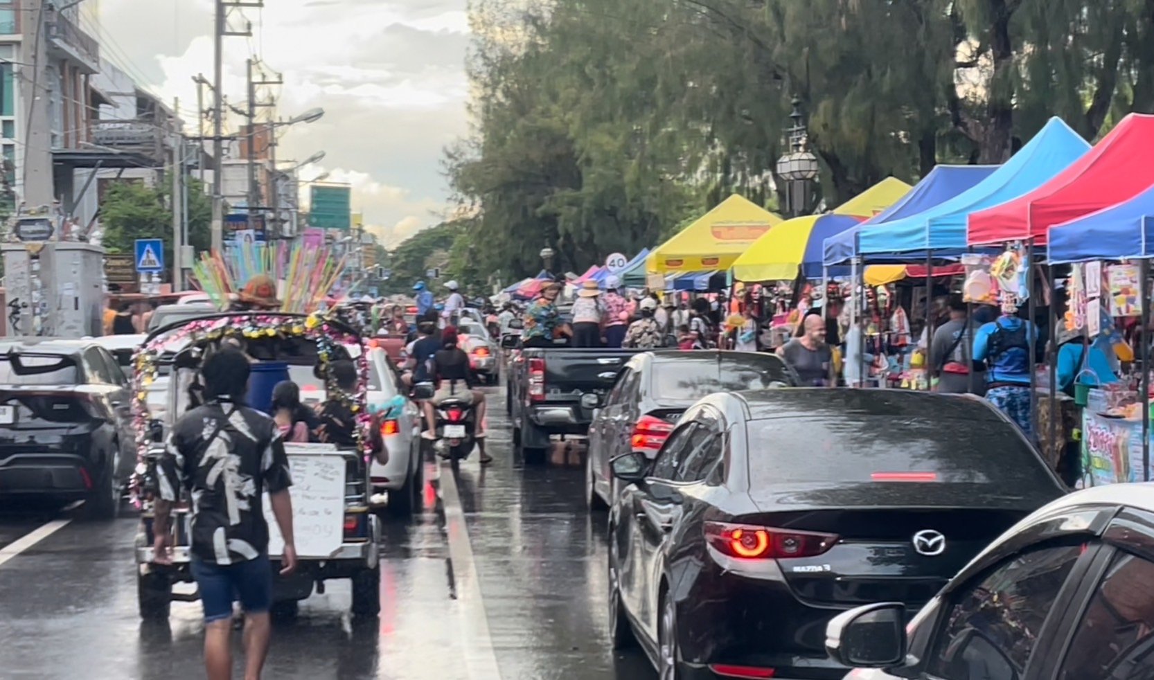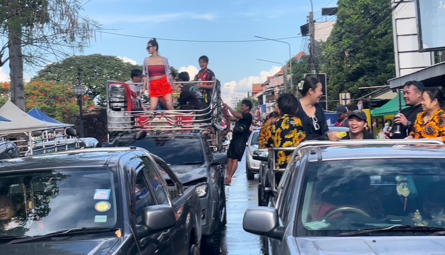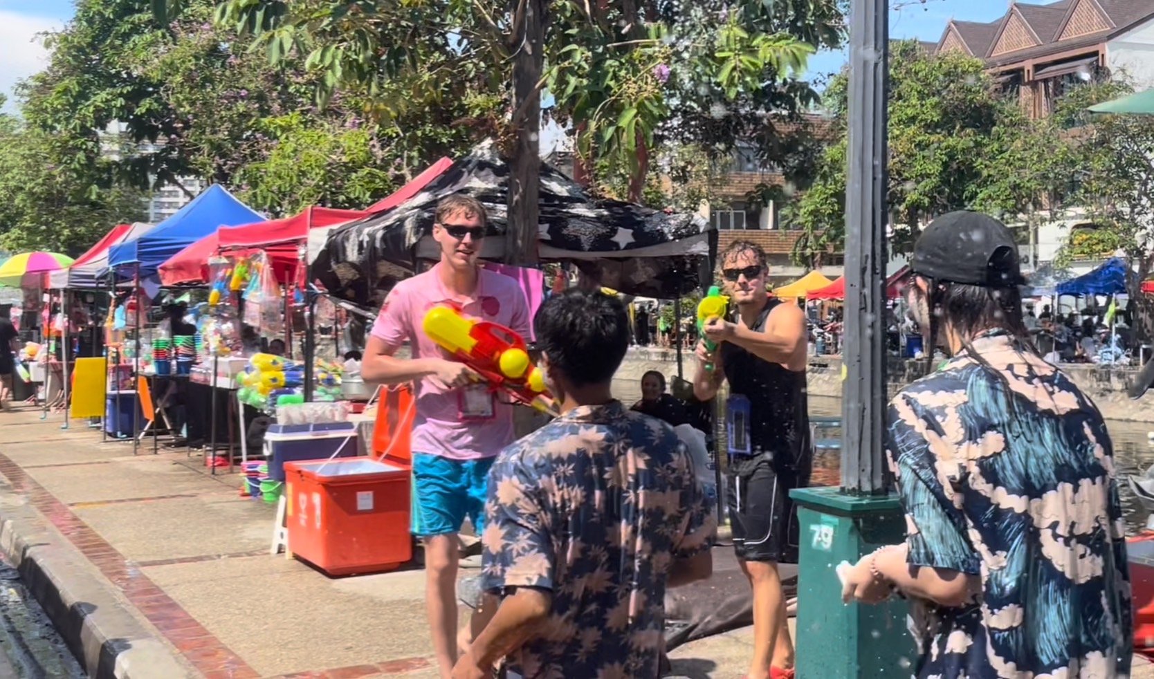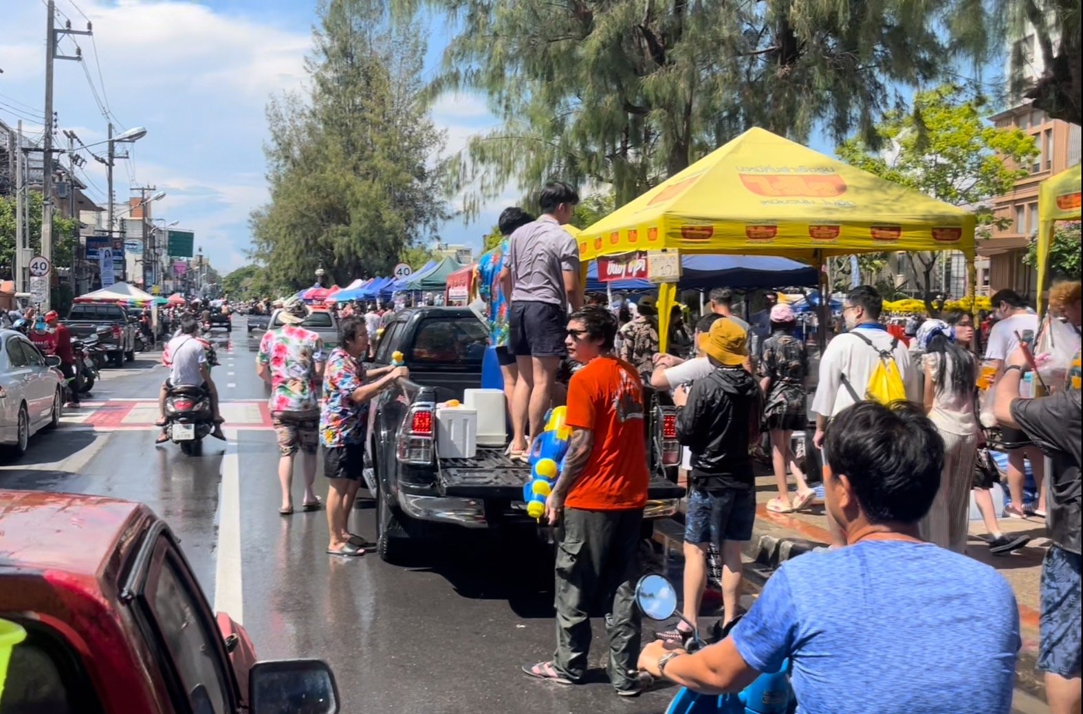 โดยประชาชนและนักท่องเที่ยวที่ออกมาเล่นสาดน้ำมีทั้งที่เดินเล่นและนั่งรถกระบะ อีกทั้งมีการเปิดเพลงเต้นและเล่นสาดน้ำกันอย่างสนุกคึกคัก ท่ามกลางสภาพอากาศที่ในวันนี้ท้องฟ้าปลอดโปร่งแจ่มใส ซึ่งมีทั้งเด็ก วัยรุ่นหนุ่มสาว และชาวต่างชาติ ที่ต่างพร้อมใจกันมาเปียกน้ำส่งท้ายเทศกาลสงกรานต์ปีนี้