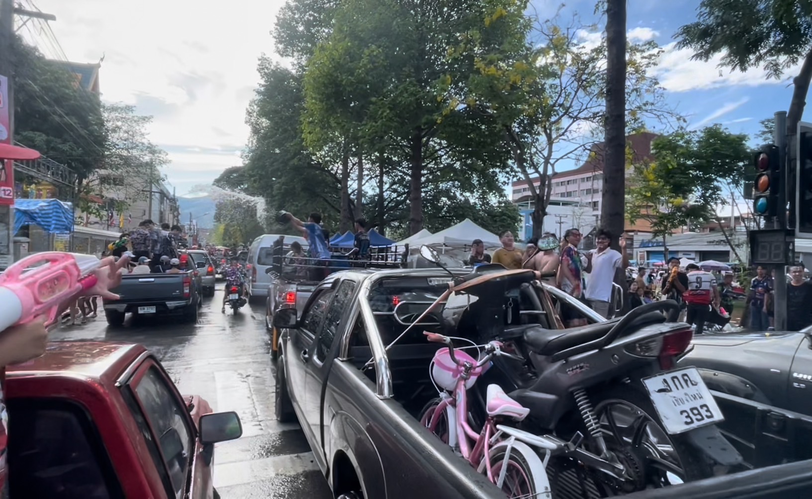 บรรยากาศของเทศกาลสงกรานต์วันที่ 15 เม.ย. 68 ซึ่งถือเป็นวันส่งท้ายของการละเล่นสาดน้ำในตัวเมืองเชียงใหม่ วันนี้ยังคงเป็นไปอย่างคึกคัก โดยตลอดทั้งวันตั้งแต่ช่วงเช้าจนถึงเย็น มีประชาชนและนักท่องเที่ยวทั้งชาวไทยและต่างชาติพร้อมใจกันออกมาเล่นสาดน้ำกันอย่างคึกคักสนุกสนาน โดยเฉพาะที่บริเวณรอบคูเมืองเชียงใหม่ ที่ตั้งแต่ช่วงเช้ามีการละเล่นสาดน้ำกันทั้งคูเมืองด้านนอกและด้านใน