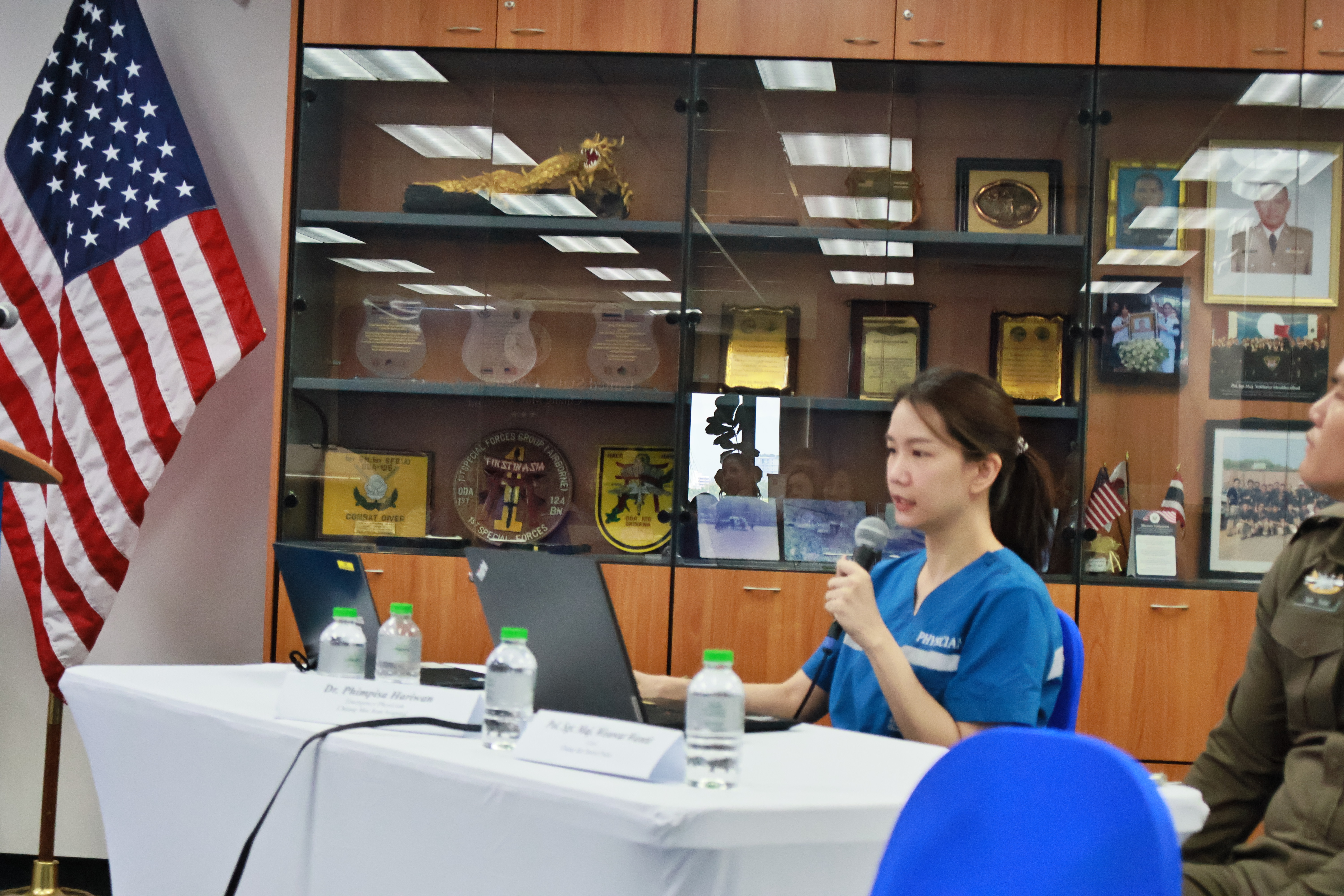 During the event, Chiang Mai Ram Hospital contributed by providing educational presentations to the staff and families of the U.S. Consulate General Chiang Mai. Dr. Phimphisa Harinwan, an emergency medicine specialist, and Ms. Suphaluck Viradeja, head nurse of the emergency department at Chiang Mai Ram Hospital, were invited as speakers. They provided knowledge about basic first aid in various emergency situations, such as treating injuries from venomous, administering first aid for dog bites, caring for patients suffering from heat stroke during the summer, as well as initial management of food poisoning symptoms, and the procedure for requesting emergency ambulance services through the 1669 hotline.
