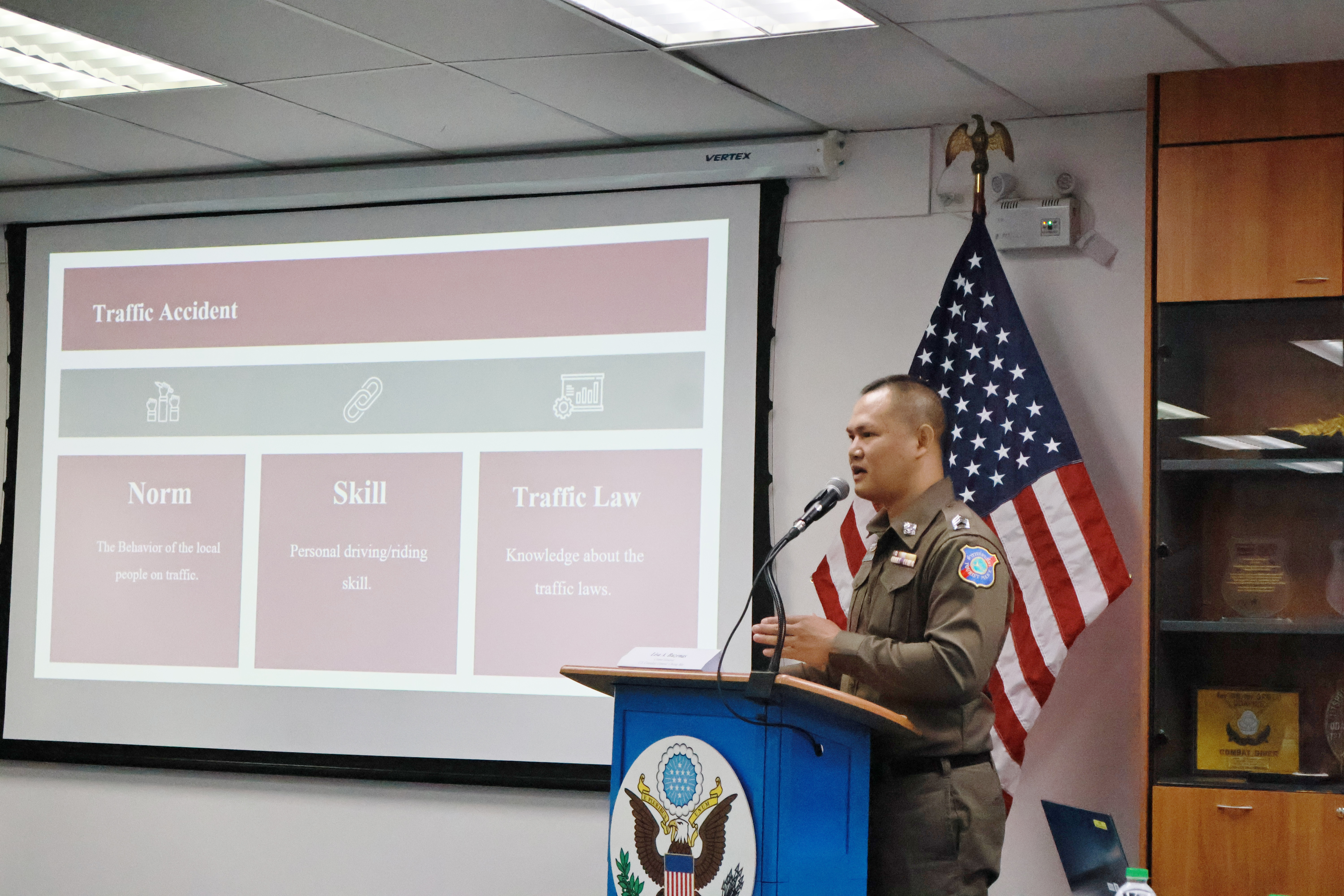 นอกจากนี้ จ.ส.ต. วิษุวัต วันทิตย์ เจ้าหน้าที่ตำรวจท่องเที่ยวจังหวัดเชียงใหม่ ได้ให้ความรู้เกี่ยวกับการรับมือเมื่อเกิดเหตุฉุกเฉินด้านการจราจร การปฏิบัติตนตามกฎจราจรอย่างเคร่งครัดเพื่อความปลอดภัย และการสังเกตป้ายสัญญาณจราจรอย่างถูกต้อง