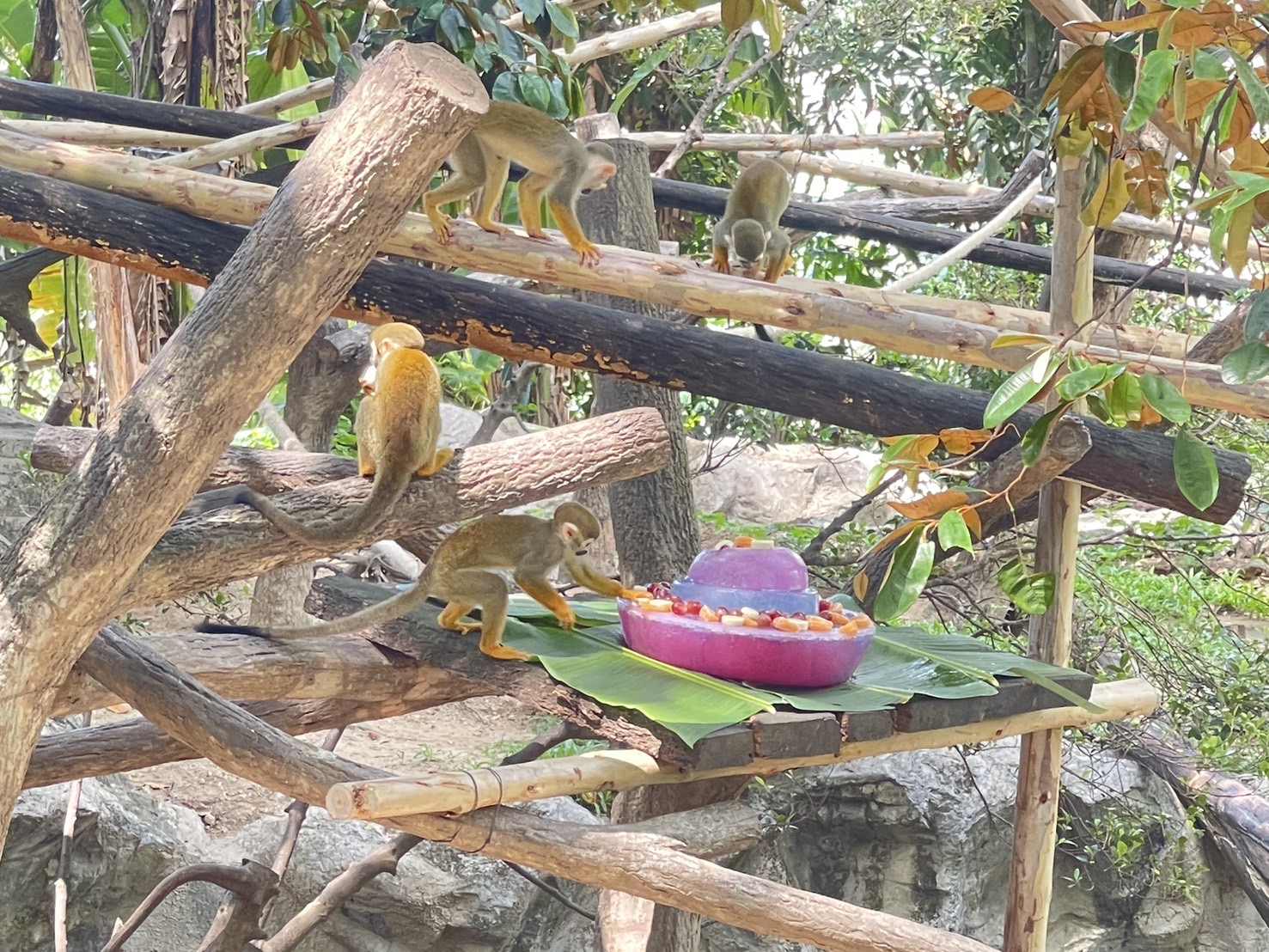 - จัดกิจกรรมคลายร้อนเฉพาะสัตว์แต่ละชนิด อาทิเช่น เสือดำ: ได้รับหวานเย็นที่ทำจากเลือดหรือเนื้อสัตว์, ลิงกระรอก: ได้รับเค้กน้ำแข็งที่ทำจากผลไม้ ช่วยส่งเสริมพฤติกรรมตามธรรมชาติ และลดความเครียดจากความร้อน