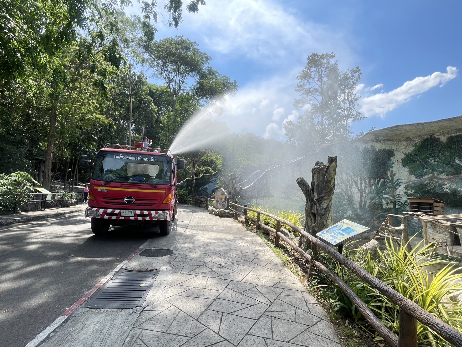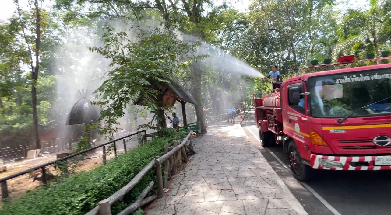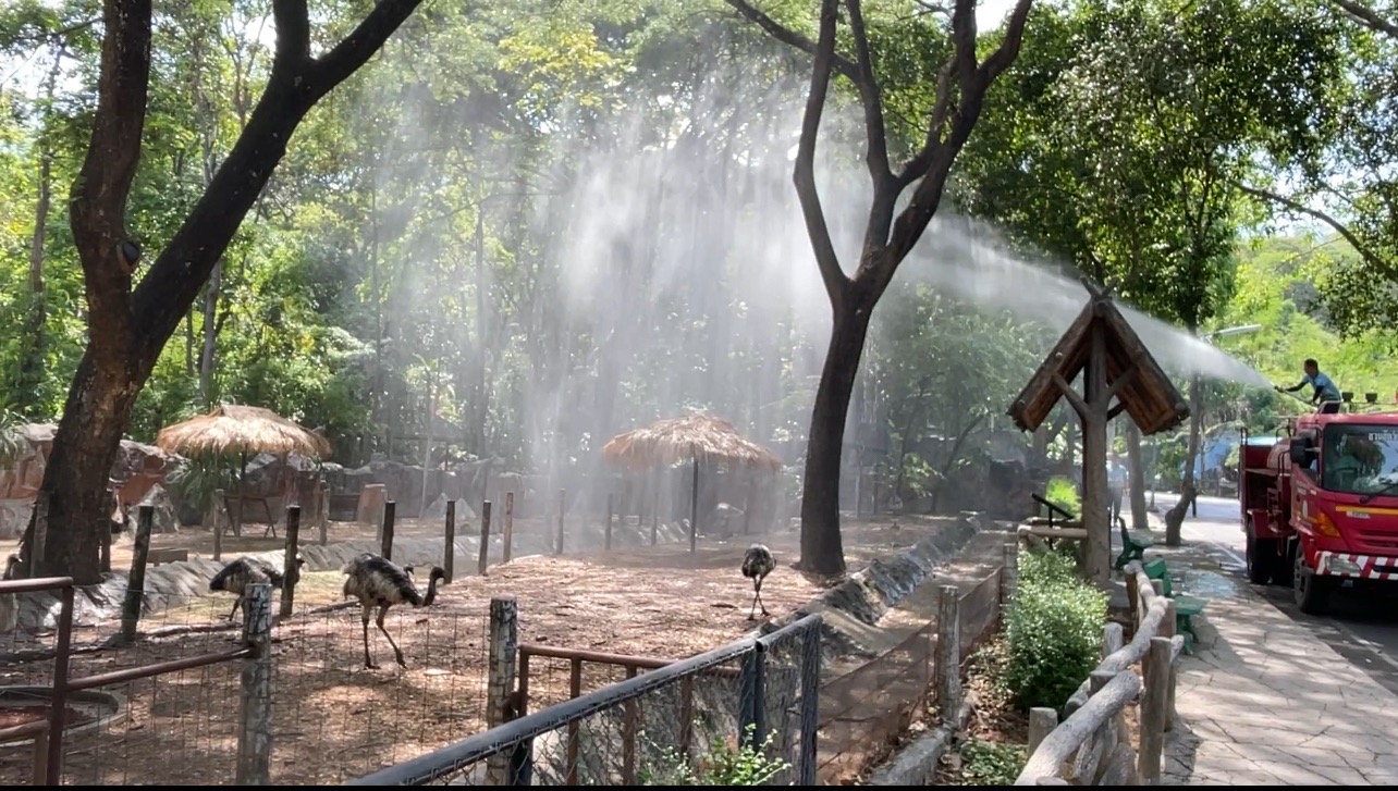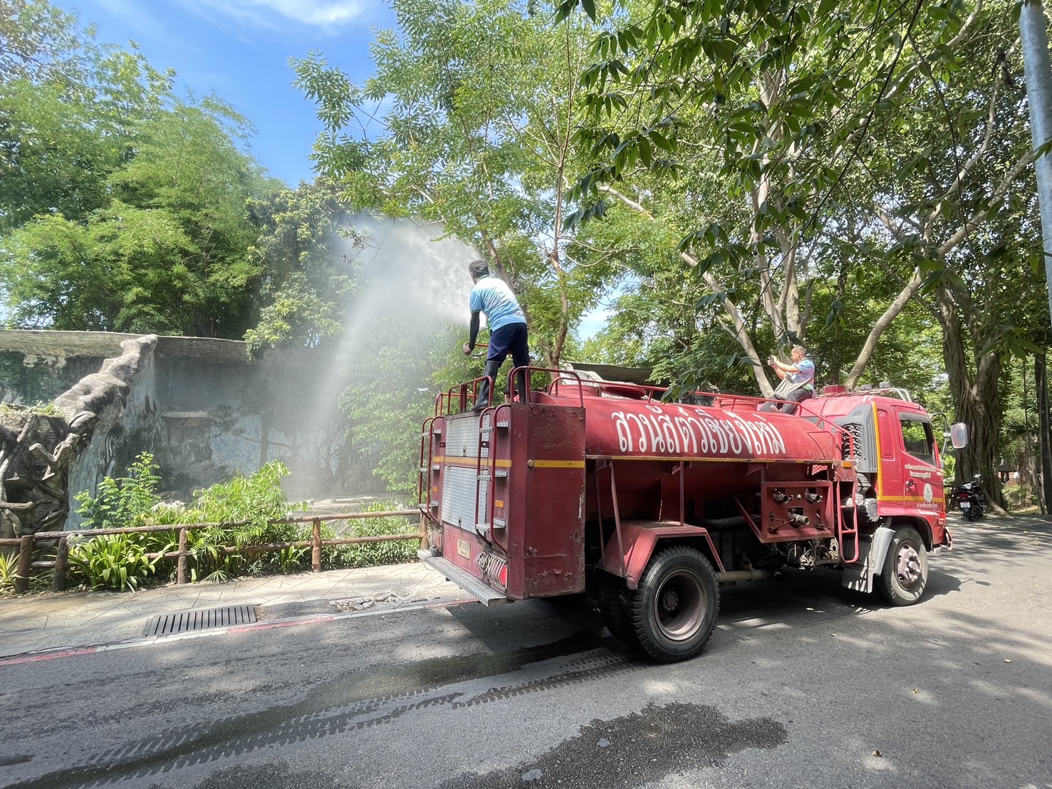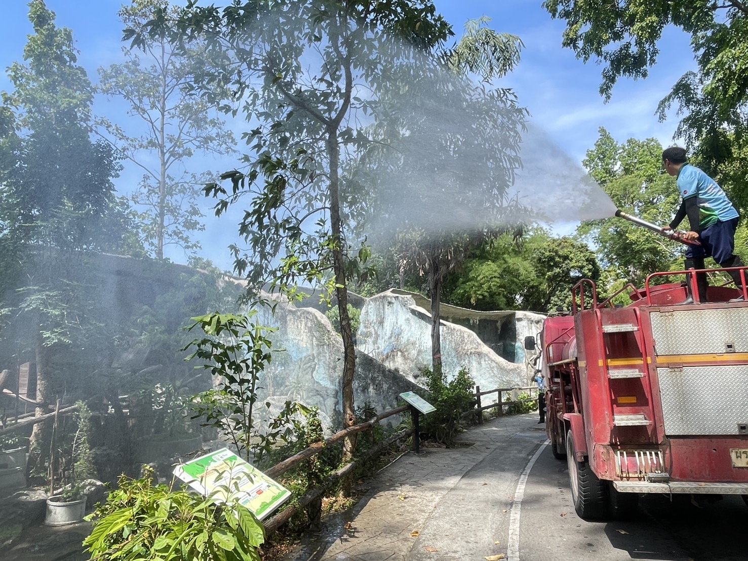 - เพิ่มความชุ่มชื้นในพื้นที่ ฉีดพ่นละอองน้ำทั่วบริเวณสวนสัตว์ในช่วงเช้าและบ่าย, ติดตั้งสปริงเกอร์พ่นละอองน้ำในบริเวณ ส่วนจัดแสดงสัตว์กลางแจ้ง เพื่อช่วยลดอุณหภูมิ