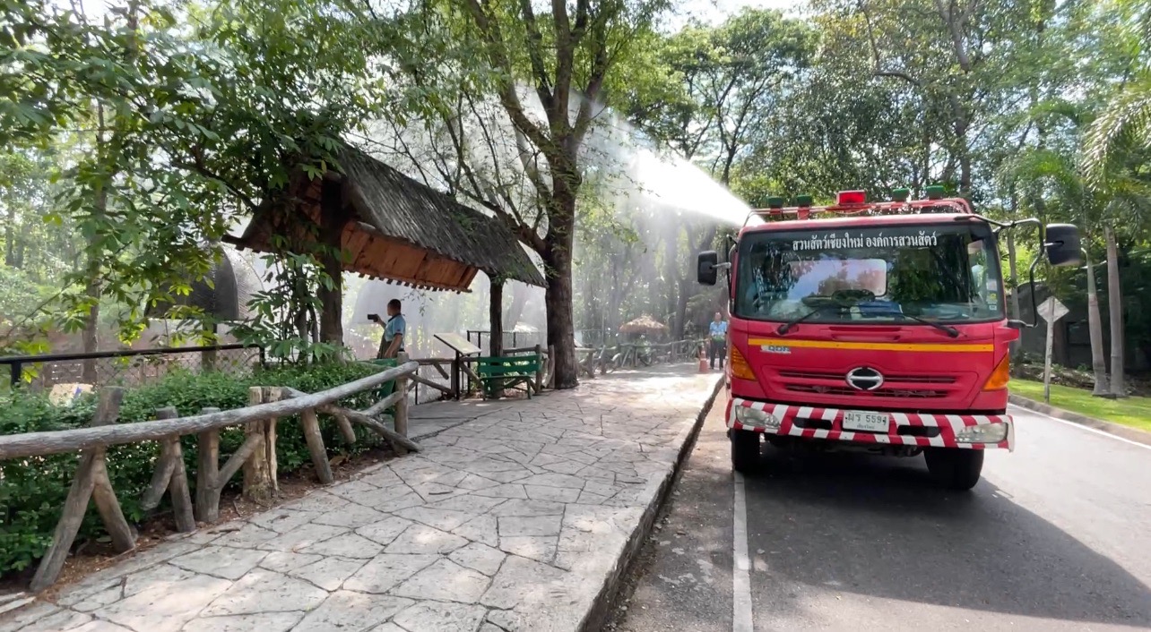 นายพิชิต ชิตมินทร์ ผู้ช่วยผู้อำนวยการสวนสัตว์เชียงใหม่ เปิดเผยว่า ในช่วงนี้สวนสัตว์เชียงใหม่ ได้ดำเนินการด้วยการ ฉีดพ่นละอองน้ำ ทั่วบริเวณสวนสัตว์ในช่วงเช้าและบ่าย และติดตั้งสปริงเกอร์ พ่นละอองน้ำในหลายจุด โดยเฉพาะบริเวณจัดแสดงสัตว์กลางแจ้ง เพื่อช่วยลดอุณหภูมิในพื้นที่และให้สัตว์ได้สัมผัสกับความชุ่มชื้นที่ช่วยคลายความร้อน นอกจากนี้ยังมีการจัดกิจกรรมคลายร้อนเฉพาะสำหรับสัตว์แต่ละชนิด เช่น เสือดำ ได้รับหวานเย็นที่ทำจากเลือดหรือเนื้อสัตว์ และลิงกระรอกได้รับเค้กน้ำแข็งที่ทำจากผลไม้ ทั้งนี้เพื่อส่งเสริมพฤติกรรมตามธรรมชาติของสัตว์และลดความเครียดจากอากาศร้อน สวนสัตว์เชียงใหม่ยังคงมุ่งมั่นในการดูแลสวัสดิภาพสัตว์เป็นอันดับแรก โดยได้กำหนดมาตรการเพิ่มเติมเพื่อให้สัตว์ทุกตัวอยู่ในสภาพแวดล้อมที่เหมาะสมและปลอดภัย ซึ่งประกอบด้วยมาตรการต่างๆ