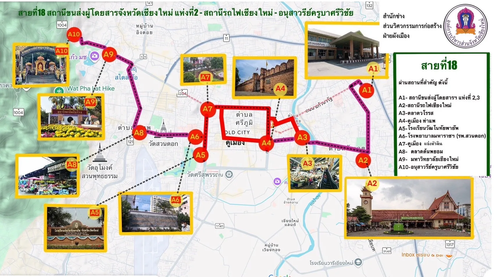 เส้นทางสายที่ 18 สถานีขนส่งผู้โดยสารจังหวัดเชียงใหม่ แห่งที่ 2 – อนุสาวรีย์ครูบางเจ้าศรีวิชัย