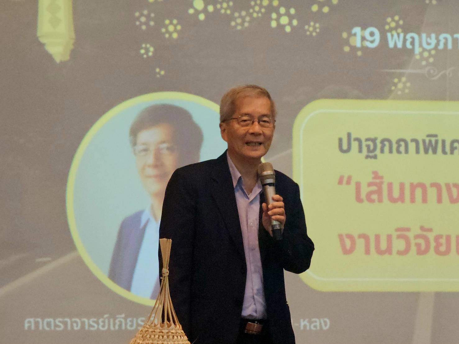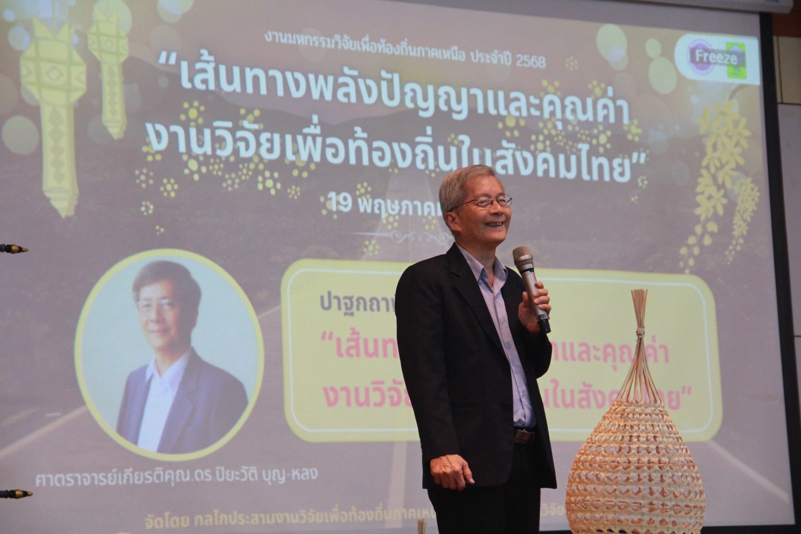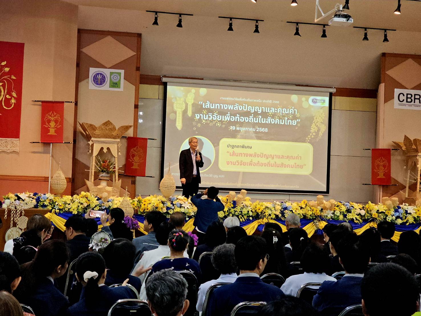 ขณะที้ ศาสตราจารย์เกียรติคุณ ปิยวัติ บุญ-หลง อดีตผู้อำนวยการสำนักงานกองทุนสนับสนุนการวิจัยฝ่ายวิจัยท้องถิ่น ได้ขึ้นปาฐกถาพิเศษ ในหัวข้อ เส้นทางพลังปัญญาและคุณค่างานวิจัยเพื่อท้องถิ่นในสังคมไทย ว่างานวิจัยเพื่อท้องถิ่น หรือ CBR ของไทย เริ่มต้นใน พ.ศ. 2541 ซึ่งมีหัวใจสำคัญคือดารลดความเหลื่อมล้ำในสังคม โดยใช้กระบวนการวิจัย โดยคนในท้องถิ่น ของการขับเคลื่อนงานวิจัยเพื่อท้องถิ่น ซึ่งมีการทำวิจัยอย่างต่อเนื่อง โดยจุดเน้นของงานวิจัยเพื่อท้องถิ่น อยู่ที่ กระบวนการ มากกว่า “ผลลัพธ์” เพื่อให้ชุมชนได้ประโยชน์จากงานวิจัยโดยตรงและให้งานวิจัยมีส่วนในการแก้ปัญหาของชุมชน