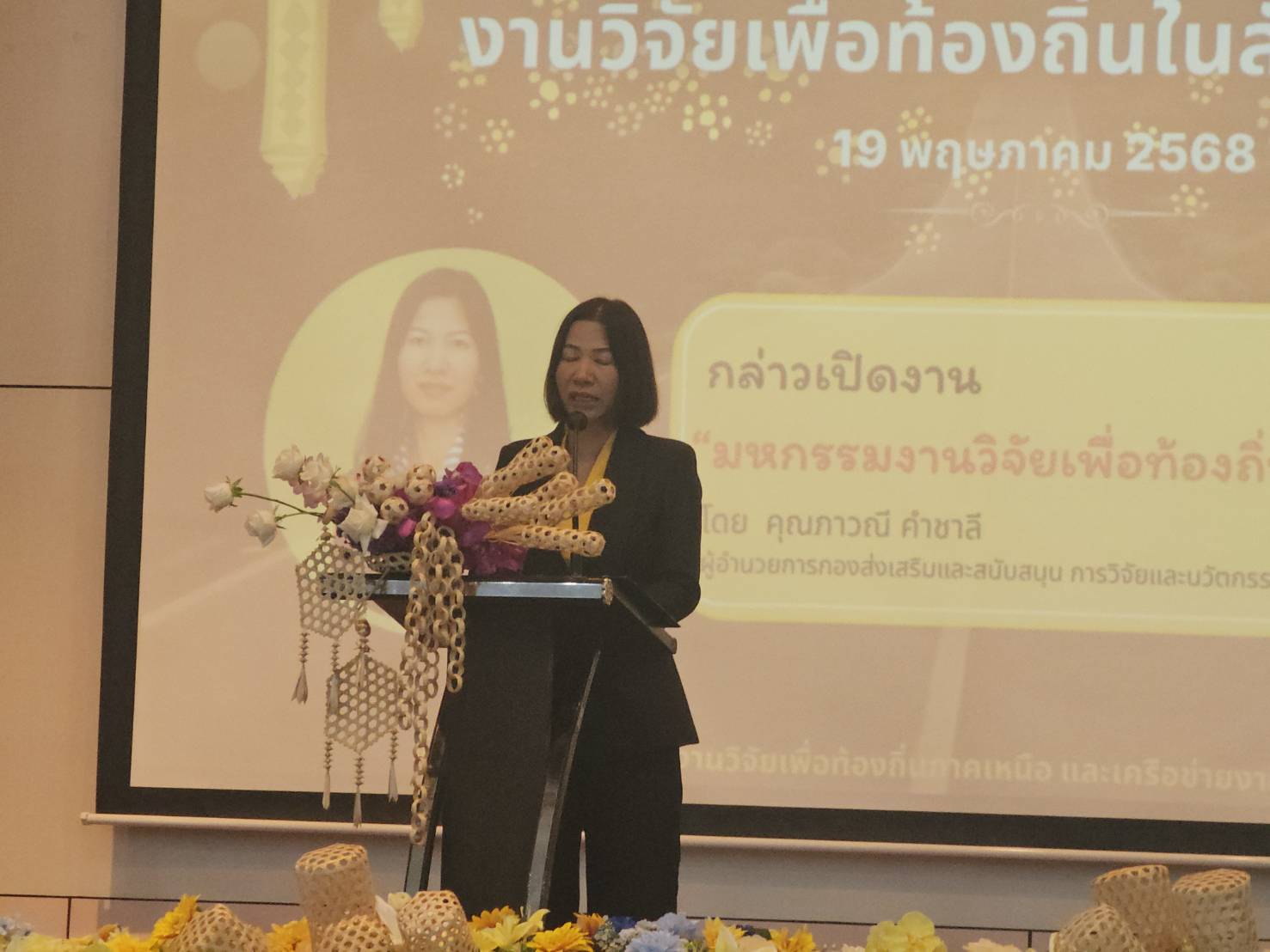 นางสาวคำวิภา คำชาลี ผู้อำนวยการกองส่งเสริมและสนับสนุนการวิจัยและนวัตกรร วช. ระบุว่า การวิจัยเป็นเครื่องมือในการพัฒนาชุมชนและท้องถิ่น ซึ่งกระบวนการที่จะนำไปสู่การพึ่งพาตัวเองโดยใช้หลักเศรษฐกิจพอเพียง คือการใช้กระบวนการทางการวิจัย เพื่อให้ชุมชนท้องถิ่น เข้าถึงทรัพยากร การวิจัยเพื่อพัฒนาเศรษฐกิจ และสังคมโดยให้ชุมชนสังคมมีส่วนร่วมในการแก้ไขปัญหาชุมชน สร้างผลลัพ สร้างเครือข่ายนักวิจัยท้องถิ่นเพื่อแก้ปัญหา ซึ่งในปี 2567 วช. ได้ดำเนินโครงการ กลไกบริหารจัดการงานวิจัยเพื่อท้องถิ่นเพื่อเศรษฐกิจฐานรากภาคเหนือปี 2567 มีการวิจัยท้องถิ่นครอมคลุม 8 จังหวัด ภาคเหนือ ประกอบด้วย จังหวัดเชียงใหม่ ลำพูน ลำปาง แม่ฮ่องสอน น่าน ตาก พิจิตร และพิษณุโลก รวม 14 โครงการ เพื่อนำองค์ความรู้มาจัดแสดงเพื่อให้ประชาชนสามารถเข้าถึงงานวิจัยได้