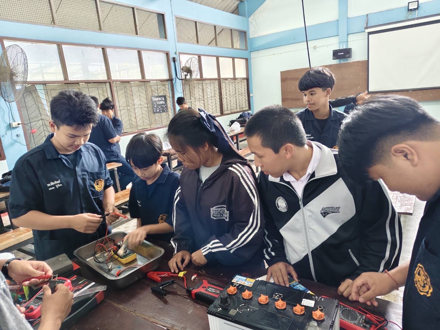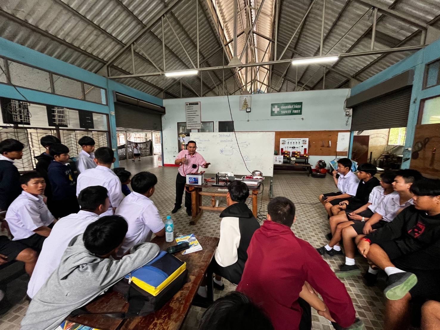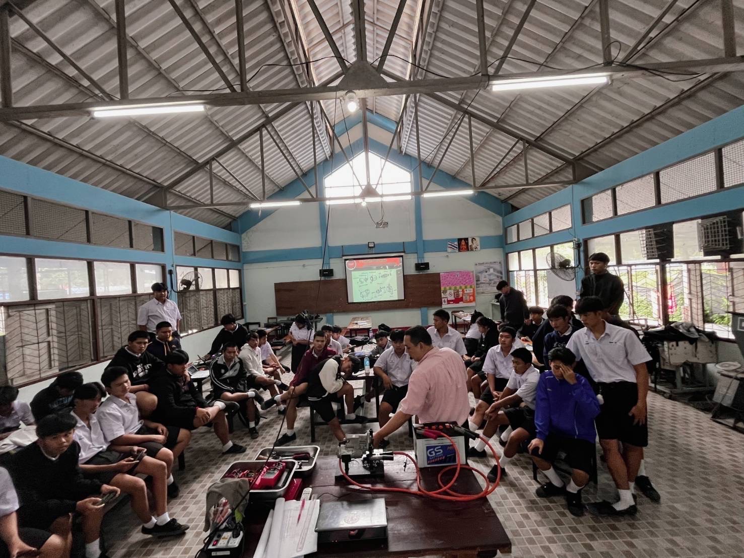 วันศุกร์ ที่ 20 มิถุนายน 2568 ดร.วัชรพงศ์ ฝั้นติ๊บ ผู้อำนวยการวิทยาลัยเทคนิคเชียงใหม่ ปฏิบัติหน้าที่ผู้อำนวยการสำนักงานอาชีวศึกษาจังหวัดเชียงใหม่ และรักษาการในตำแหน่งที่ปรึกษาด้านนโยบายและแผน สำนักงานคณะกรรมการการอาชีวศึกษา มอบหมายให้แผนกวิชาช่างยนต์ดำเนินการจัดการศึกษาเรียนร่วมหลักสูตรอาชีวศึกษาและมัธยมศึกษาตอนปลาย (ทวิศึกษา) รายวิชางานเครื่องยนต์ดีเซลให้แก่นักเรียนโรงเรียนเวียงแหงวิทยาคม ในสัปดาห์ที่ 6 ประจำภาคเรียนที่ 1 ปีการศึกษา 2568 ซึ่งมีนักเรียนที่เข้าร่วมโครงการหลักสูตรทวิศึกษาทั้งหมดจำนวน 40 คน โดยมีการจัดการเรียนการสอนดังนี้