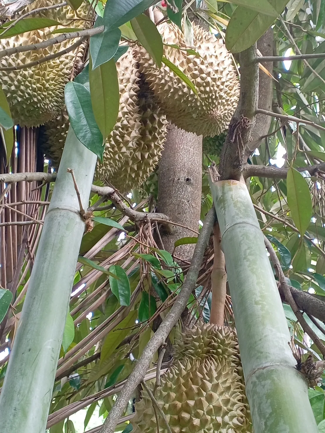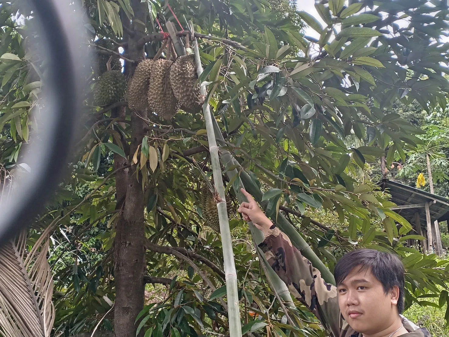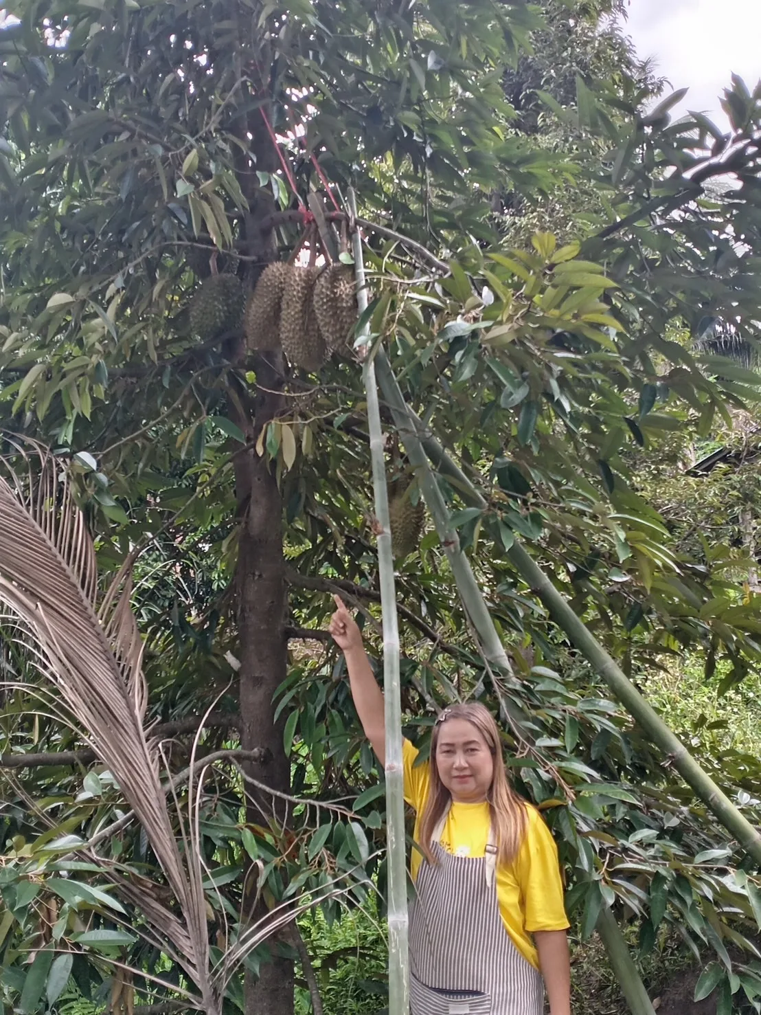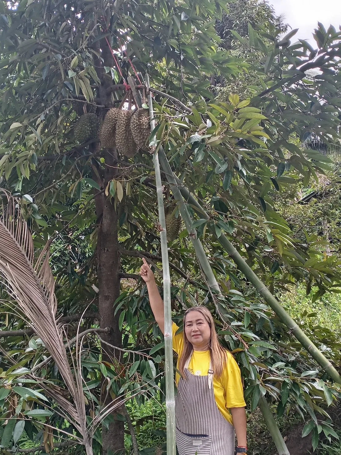 “คุณติ๋ม”เล่าอีกว่าแม่ของเธอก็ได้ปลูกทุเรียนพันธุ์ชะนีเก็บเกี่ยวผลผลิตขายทุกปีเช่นกัน ส่วนเธอได้ริเริ่มปลูกทุเรียนพันธุ์ทองเมื่อ 4-5 ปีที่ผ่านมา และเมื่อปีที่แล้วทุเรียนเริ่มออกลูกเป็นปีแรกแต่ไม่เยอะ และมาปีนี้ทุเรียนออกลูกดกมากเต็มต้น ประมาณ 20 กว่าต้น เมื่อ 2 วันที่ผ่านมาทุเรียนต้นใหญ่ มีลูก 21 ลูก ได้โค่นล้มลง เสียดายมาก ส่วนทุเรียนที่มีอยู่จะเก็บเกี่ยวผลผลิตได้ในราวเดือนกรกฎาคมนี้ ส่วนราคาทุเรียนก็ขึ้นอยู่ตามราคาท้องตลาด