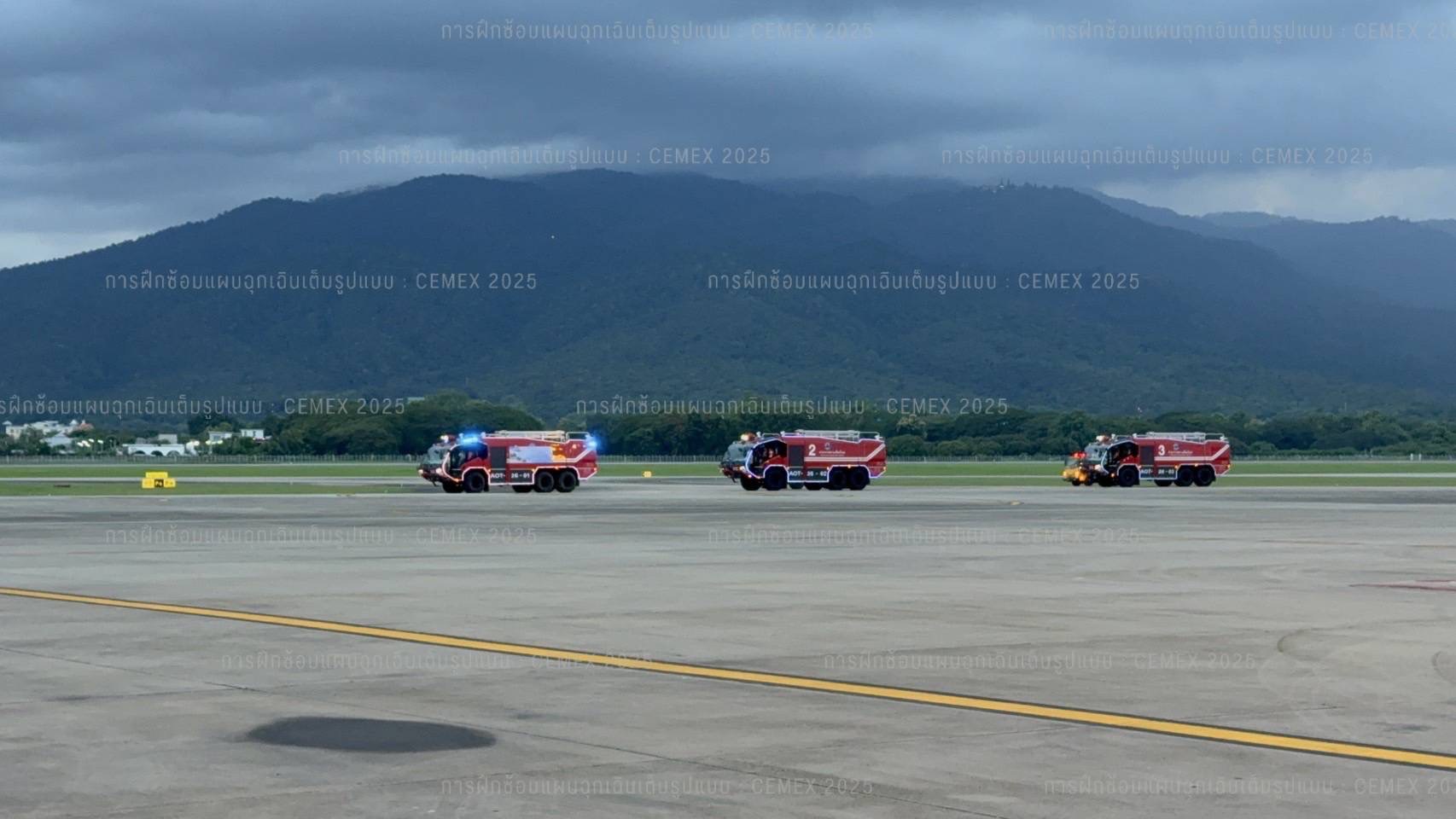 เมื่อช่วงเย็นวันที่ 27 มิถุนายน 2568 นาวาอากาศโท รณกร เฉลิมแสนยากร ผู้อำนวยการท่าอากาศยานเชียงใหม่ เป็นประธานเปิดการฝึกซ้อมเต็มรูปแบบตามแผนฉุกเฉิน ท่าอากาศยานเชียงใหม่ บทที่ 3 กรณีอากาศยานประสบภัยขณะทำการบิน (In-flight Emergencies) ประจำปี 2568 ภายใต้รหัสฝึกซ้อม CEMEX25 โดยมีผู้บริหาร หน่วยงานการแพทย์ทั้งภาครัฐและเอกชน ผู้แทนส่วนราชการ ผู้แทนสายการบิน ผู้ประกอบการ และหน่วยงานต่าง ๆ ที่เกี่ยวข้อง เข้าร่วมฝึกซ้อมและทบทวนขั้นตอนการปฏิบัติอย่างพร้อมเพรียง ทั้งนี้ได้รับการสนับสนุนอากาศยานของสายการบินไทยแอร์เอเชีย (Thai AirAsia) สำหรับใช้ในการจำลองสถานการณ์ เที่ยวบิน AV 619 ของสายการบิน AWA Airlines เส้นทางคุณหมิง – ภูเก็ต ประสบเหตุตกหลุมอากาศอย่างรุนแรงขณะทำการบิน และขอลงจอดฉุกเฉิน ณ ท่าอากาศยานเชียงใหม่ มีผู้โดยสารได้รับบาดเจ็บจำนวนมาก และมีผู้เสียชีวิต