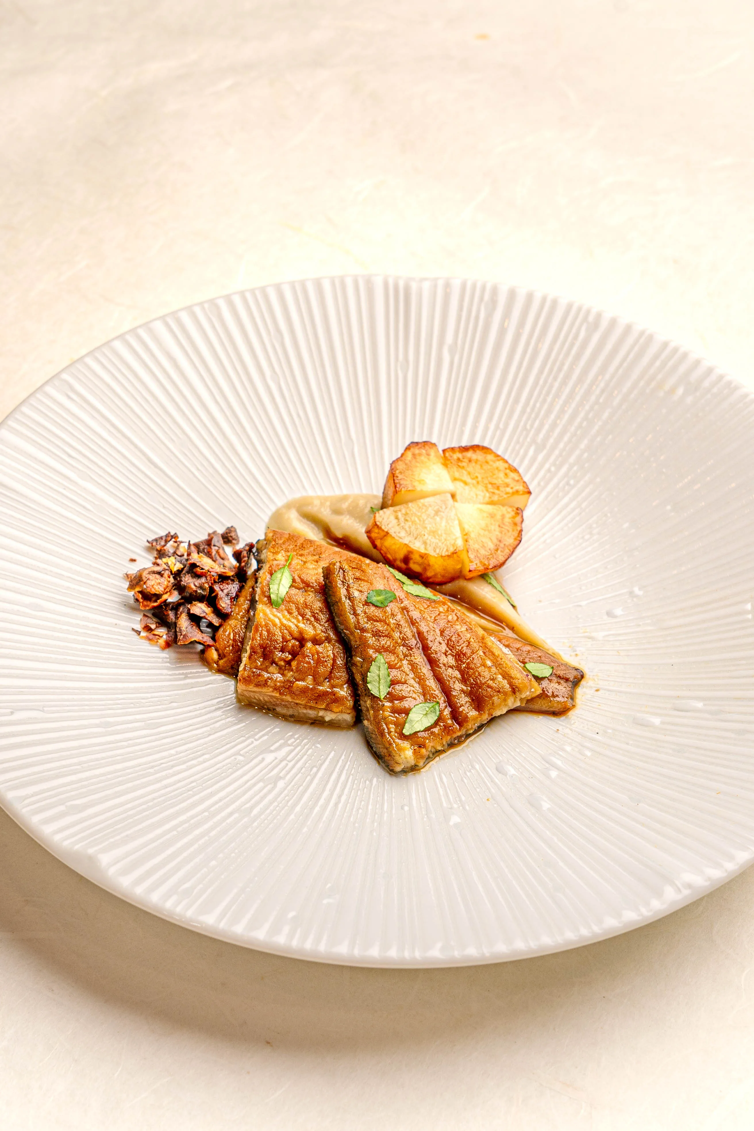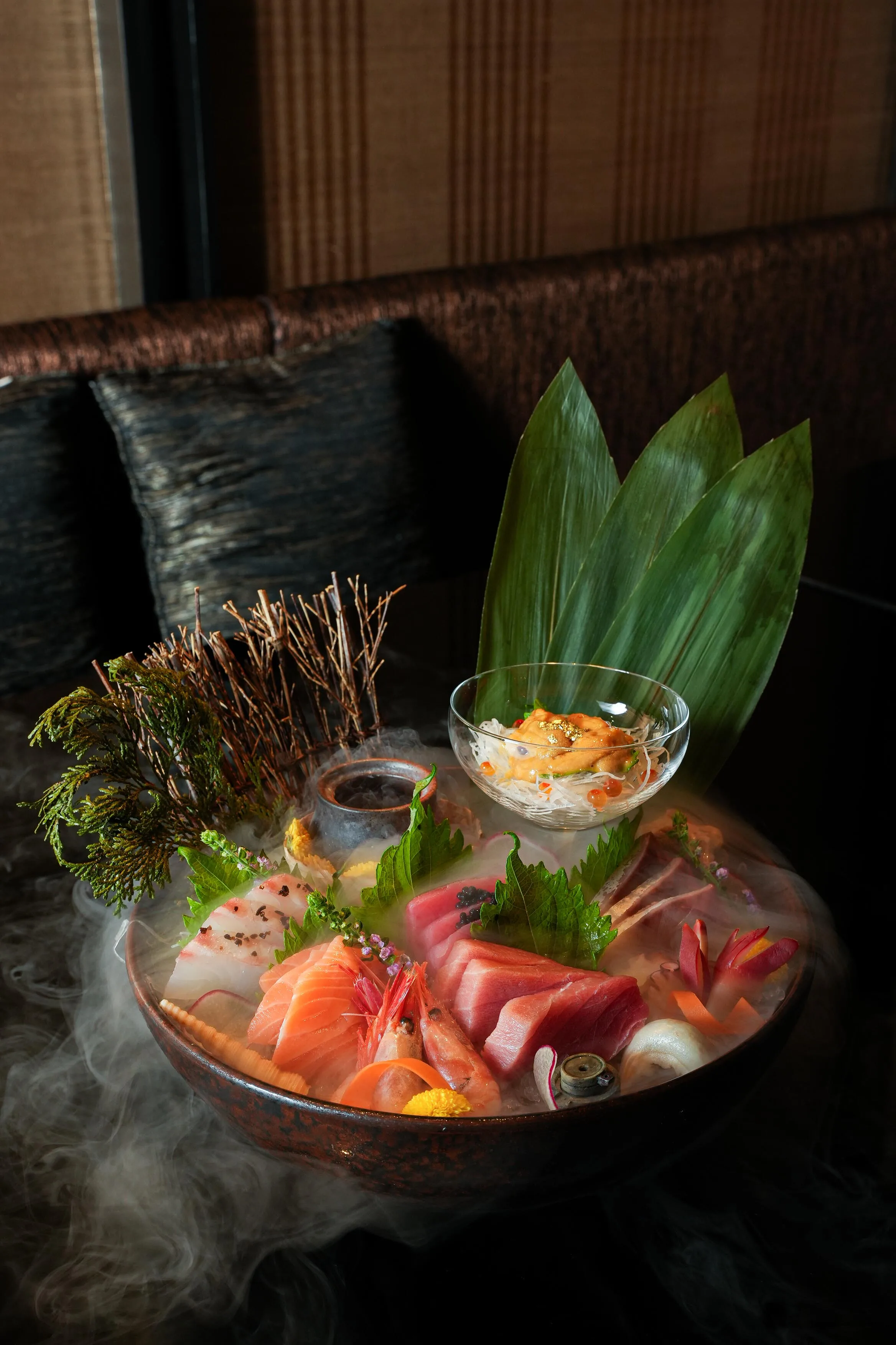 ซูชิพรีเมียมที่ใช้วัตถุดิบสดจากทะเลตามฤดูกาล 7 ชนิด ปรุงด้วยเทคนิค เอโดะมาเอะ ดั้งเดิมจากโตเกียว ซึ่งเป็นวิธีการหมัก ดอง และจัดการวัตถุดิบอย่างพิถีพิถัน เพื่อรักษาและเสริมรสชาติอาหารทะเลให้อร่อยยิ่งขึ้น อีกหนึ่งเมนูไฮไลท์ ปลาไหลย่างสไตล์คาบายากิ (Unagi Kabayaki) หนังปลากรอบเนื้อนุ่ม เสิร์ฟคู่อาร์ติโชกเยรูซาเล็ม พร้อมเห็ดไมตาเกะ ต่อด้วย โซบะวอลนัท (Walnut Soba) เสิร์ฟพร้อมน้ำมันวอลนัทไนโตร เครื่องเทศญี่ปุ่น 7 ชนิด (นานามิ ยากูมิ) และน้ำซุปปลาแห้งดาชิโชยุหอมกรุ่น ให้รสชาติสดชื่นกลมกล่อม ปิดท้ายด้วย ข้าวหน้าเทริยากิมะเขือม่วงญี่ปุ่น (Nasu Teriyaki Donburi) ให้สัมผัสนุ่มละมุนลิ้น และเมนูพิเศษอื่น ๆ อีกมากมาย