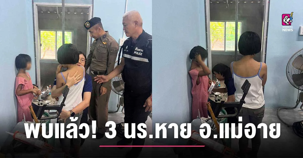 พบแล้ว 3 นักเรียนที่หายตัวไปจากหอนอน นานกว่า 40 ชม. หลังเจ้าหน้าที่ออกติดตามหาตัว เผยสาเหตุทั้งหมดคิดถึงบ้านจึงพากันมุดรั้วโรงเรียนเดินกลับบ้าน จนสุดท้ายชาวบ้านไปเจอป่าหลังหมู่บ้านและทุกคนปลอดภัย