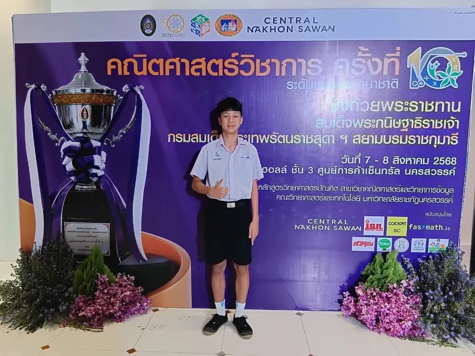 เด็กชายไชยพร สมเกตุ นักเรียนชั้นมัธยมศึกษาปีที่ 2/12 ห้องเรียนพิเศษ ISMP โรงเรียนวัฒโนทัยพายัพ ได้แข่งขัน A-MATH ได้รับรางวัลรองชนะเลิศอันดับที่ 1 ระดับชั้นมัธยมศึกษาตอนต้นในการแข่งขันคณิตศาสตร์วิชาการ ครั้งที่ 10 ชิงถ้วยพระราชทานสมเด็จพระกนิษฐาธิราชเจ้า กรมสมเด็จพระเทพรัตนราชสุดาฯ สยามบรมราชกุมารี ในการแข่งขันคณิตศาสตร์วิชาการ ครั้งที่ 10 แข่งขันวันที่ 7-8 สิงหาคม 2568 ณ ฮอลล์ ชั้น 3 ศูนย์การค้าเซ็นทรัล นครสวรรค์ จัดโดย สาขาวิชาคณิตศาสตร์และสถิติ คณะวิทยาศาสตร์และเทคโนโลยี มหาวิทยาลัยราชภัฏนครสวรรค์ ฝึกซ้อมโดย นายสุบิน เครือแก้ว และคณะ