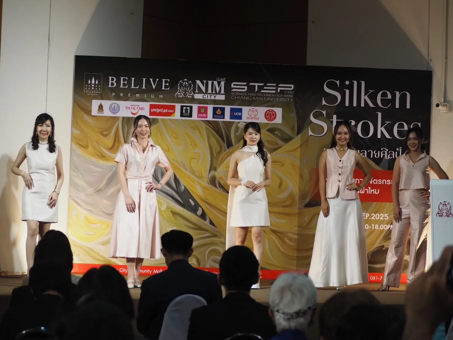 เมื่อวันที่ 12 กันยายน 2568 นางสาวฉัตรชนก ทองสำฤทธิ์ รองผู้อำนวยการสำนักงาน ททท.สำนักงานเชียงใหม่ กล่าวเปิดงานแสดงภาพจิตรกรรมบนผืนผ้าไหมงาน “Silken Stokes – เส้นไหม ลายศิลป์ ” ครั้งแรกของเชียงใหม่ โดยมี ดร.ปราณี สุวิทย์ศักดานนท์ ผู้บริหารโครงการ นิ่มซิตี้ คอมมูนิตี้ มอลล์ กล่าววัตถุประสงค์การจัดงาน พร้อมด้วย พิมอัครา พิชญ CEO & Creative Director แบรนด์ Belive Premium อ.พรชัย ใจมา ผู้อำนวยการพิพิธภัณฑ์ศิลปะเชียงใหม่ แขกรับเชิญกิตติมศักดิ์ ผู้มีเกียรติ ร่วมพิธีเปิด และเสวนาพิเศษในหัวข้อเรื่อง “เส้นไหม ลายศิลป์ – แฟชั่นผ้าไหมไทยกับงานศิลปะ หนึ่งใน Soft Power ไทย” หลังจากนั้นจะเป็นแฟชั่นโชว์ชุดผ้าไหมคอลเลค ชั่นพิเศษ นำเสนอโดยนางแบบกิตติมศักดิ์จาก STeP ณ. นิ่มซิตี้ คอมมูนิตี้มอลล์ เชียงใหม่ จัดโดย พิพิธภัณฑ์ศิลปะเชียงใหม่ ร่วมกับ แบรนด์แฟชั่นผ้าไหมไทยสไตล์โมเดิร์นลักซัวรี่ Belive Premium โครงการนิ่มซิตี้ คอมมูนิตี้มอลล์ และ อุทยานวิทยาศาสตร์และเทคโนโลยี มหาวิทยาลัยเชียงใหม่ (STeP) เพื่อส่งเสริมงานศิลปะ วัฒนธรรม ของเชียงใหม่