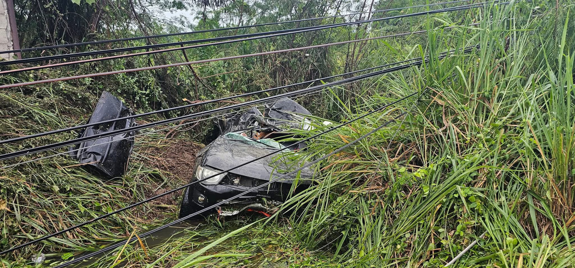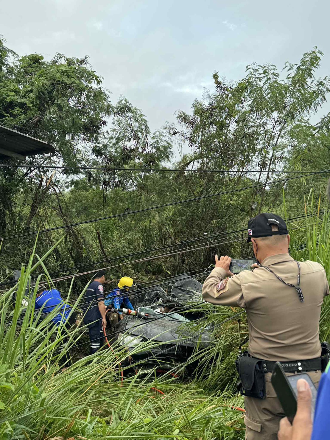 และมีรถยนต์กระบะยี่ห้อมิตชูบิชิ สภาพพังยับเยินนกอยู่ในร่องน้ำ มีร่างของชายคนขับ ไม่ทราบชื่อเสียชีวิตคาพวงมาลัย จึงทำการตัดถ่างนำร่างออกมา