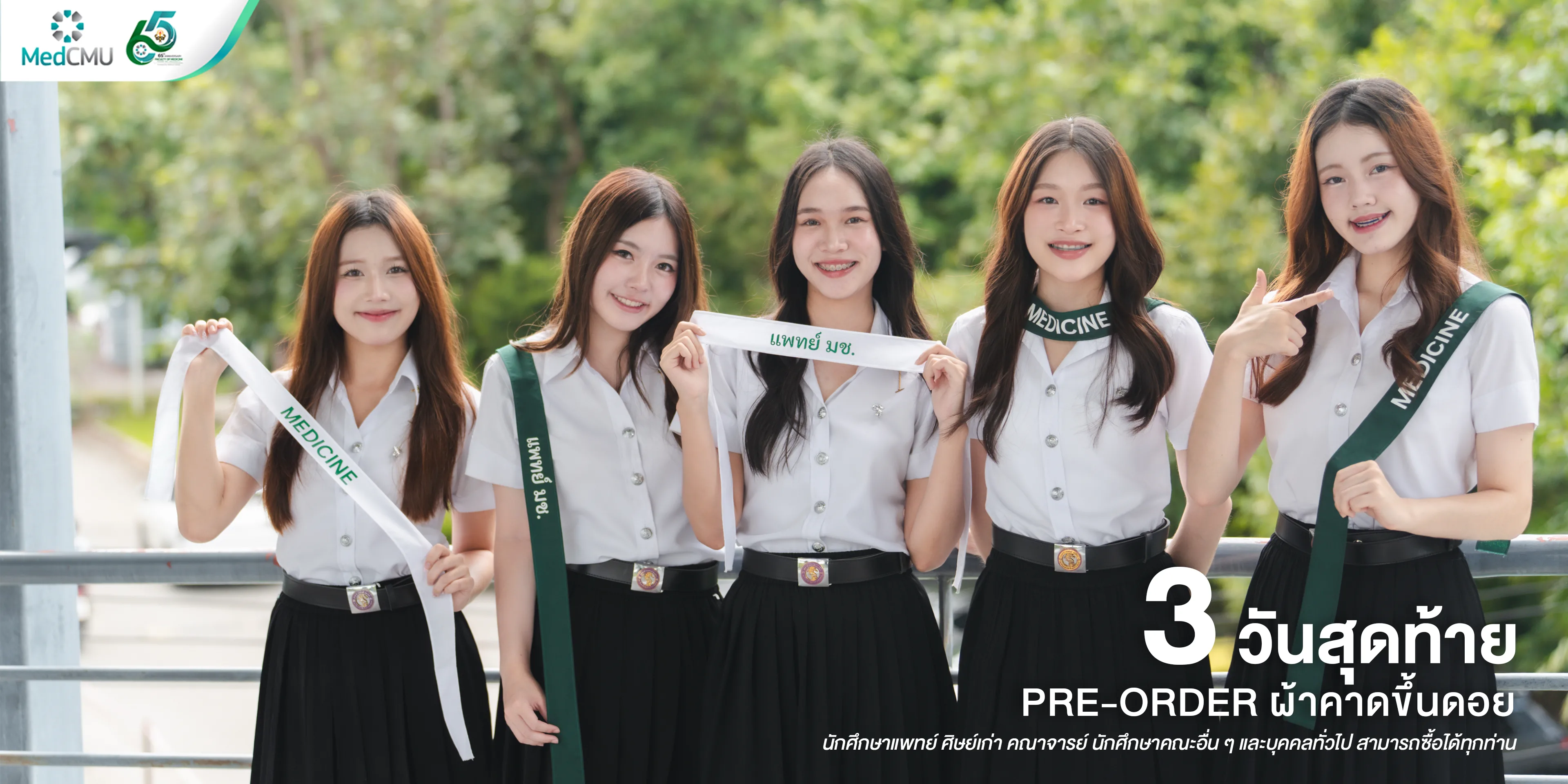 🤍 ผ้าคาดสีขาว: สกรีนคำเขียว สำหรับนักศึกษาแพทย์ ศิษย์เก่าคณะแพทย์ คณาจารย์ บุคคลที่เกี่ยวข้องในคณะแพทย์ นักศึกษาคณะอื่น ๆ และบุคคลทั่วไป