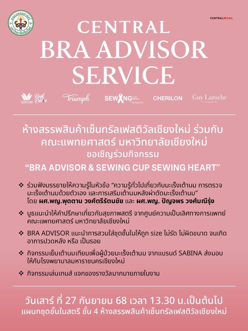 คณะแพทยศาสตร์ มหาวิทยาลัยเชียงใหม่ ร่วมกับห้างสรรพสินค้าเซ็นทรัลเฟสติวัลเชียงใหม่ ขอเชิญร่วมกิจกรรม “BRA ADVISOR & SEWING CUP SEWING HEART”💖