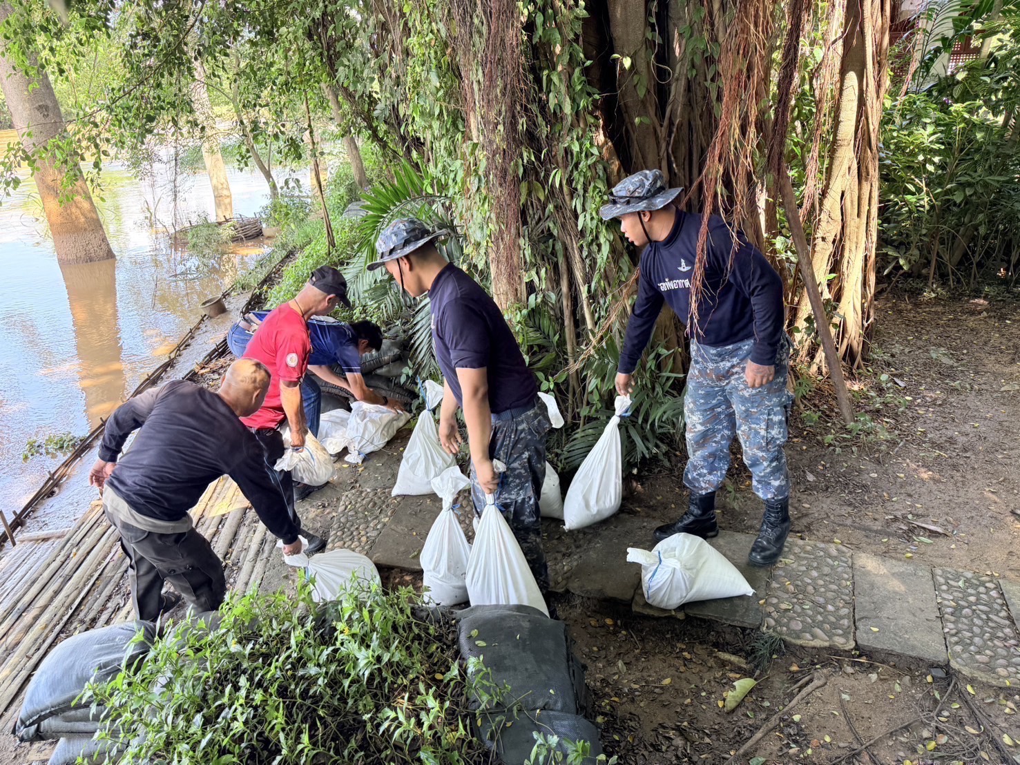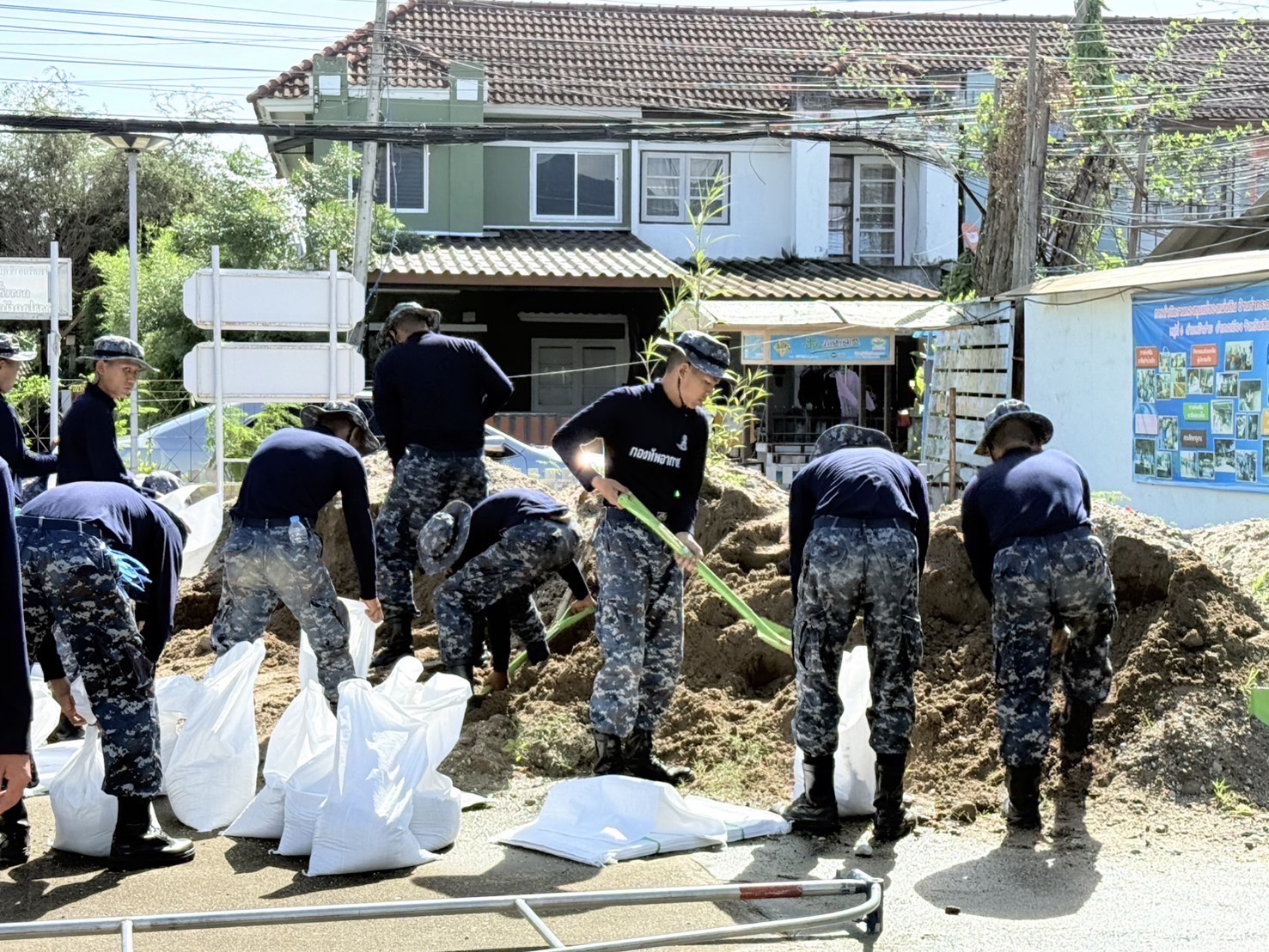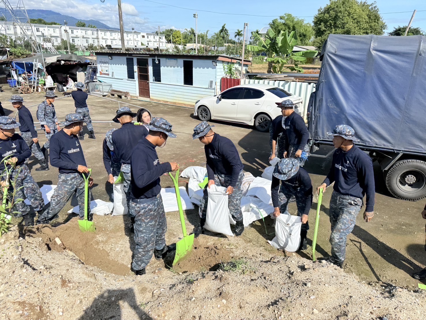 นาวาอากาศเอกปรธร จีนะวัฒน์ ผู้บังคับการกองบิน 41 ในฐานะ ผู้อำนวยการศูนย์บรรเทาสาธารณภัย กองบิน 41 ได้สั่งการให้จัดกำลังพลจากกองบิน 41 สนับสนุน เทศบาลตำบลสันผีเสื้อ ในการบรรจุกระสอบทรายเพื่อทำแนวกั้นน้ำท่วม ในบริเวณพื้นที่เสี่ยง ในพื้นที่หมู่บ้านสัมมากร ตำบลสันผีเสื้อ อำเภอเมืองเชียงใหม่ จังหวัดเชียงใหม่ เพื่อเป็นการเตรียมการป้องกันและลดความเสียหายให้กับบ้านเรือนประชาชนในพื้นที่เสี่ยงน้ำท่วม
