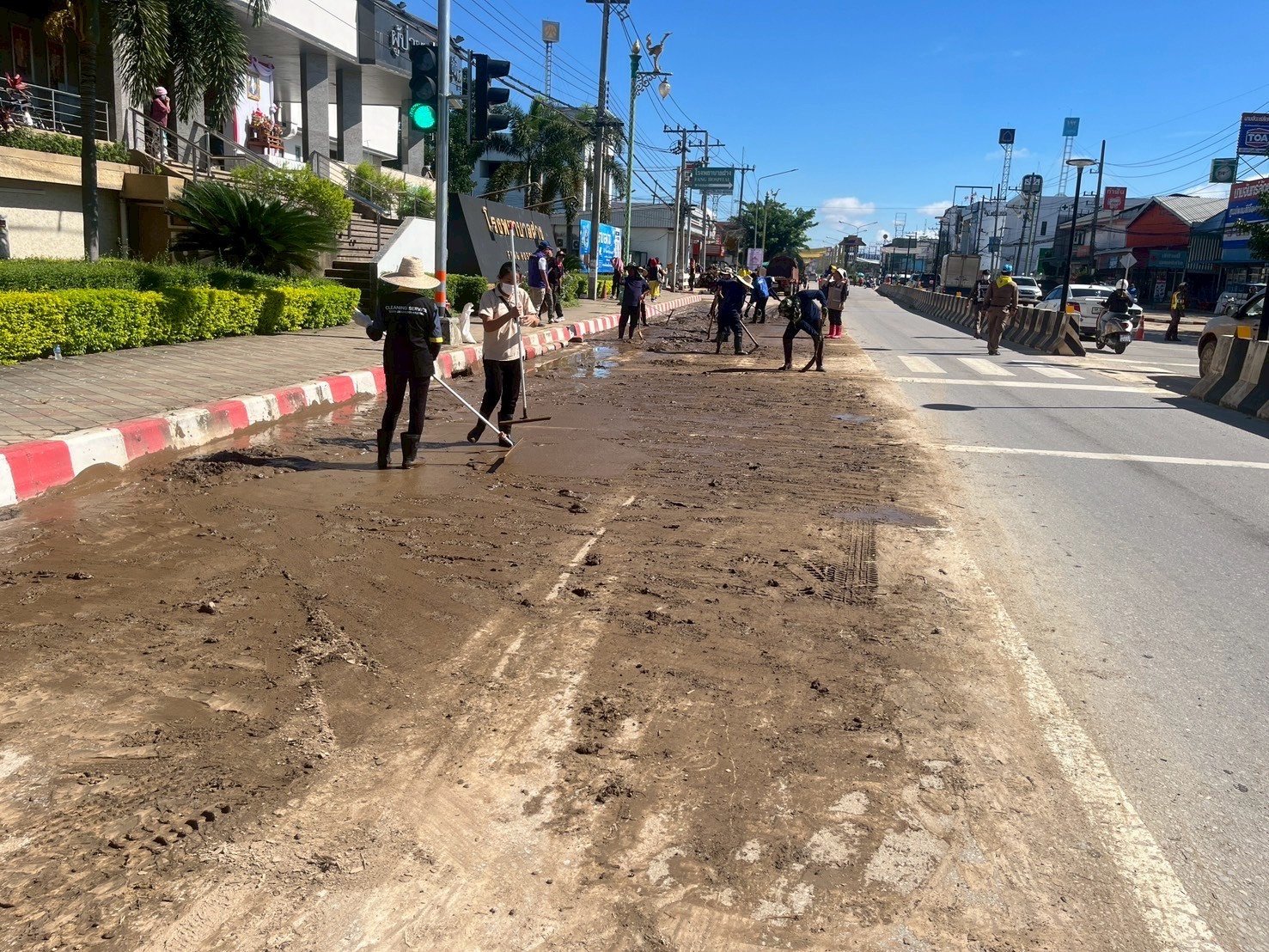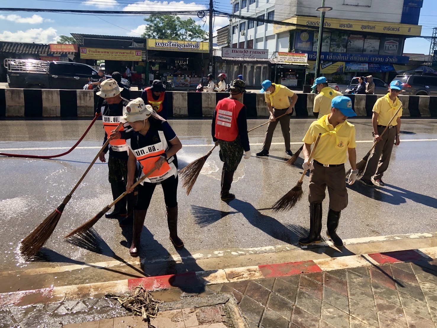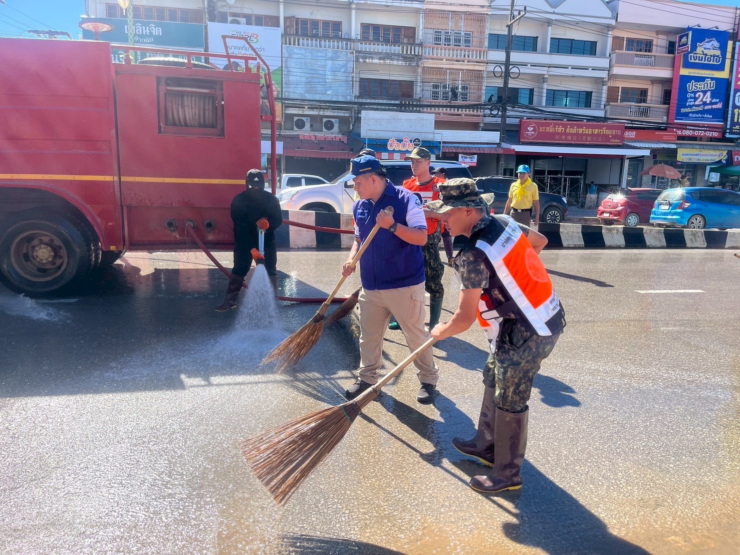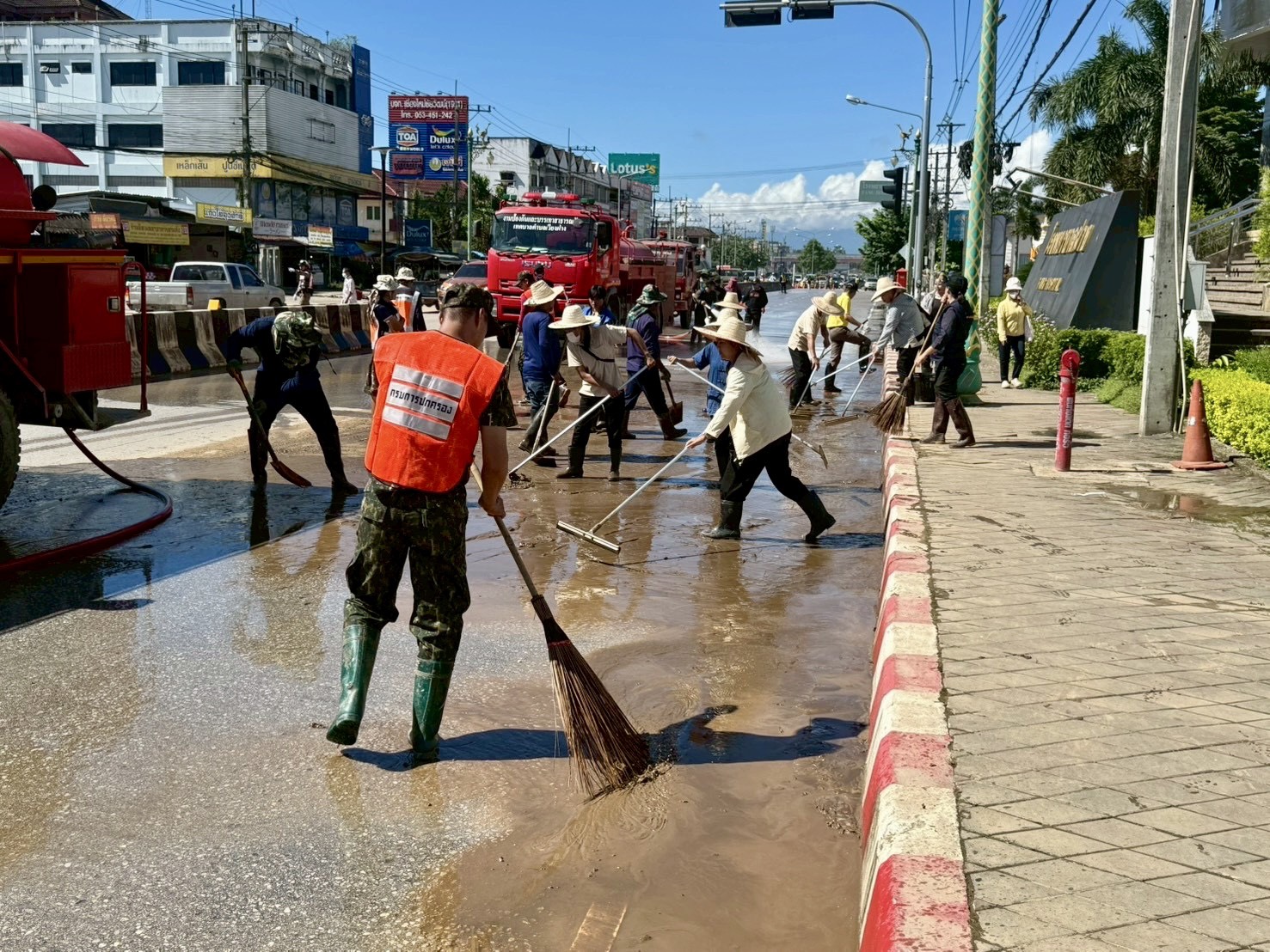 วันที่ 3 ตุลาคม 2568 เวลา 09.00 น. เป็นต้นไป ว่าที่ร้อยตรี นพรัตน์ ศุภกิจโกศล นายอำเภอฝาง มอบหมายให้ นายศตวรรษ อภิวงค์ ปลัดอำเภอฝ่ายความมั่นคง นำกำลัง สมาชิก อส. ร้อย.อส.อ.ฝาง 3 ร่วมกับ เทศบาลตำบลเวียงฝาง ตำรวจ ทหาร กำนัน ผู้ใหญ่บ้าน ตำบลเวียง จิตอาสา และหน่วยงานที่เกี่ยวข้อง ร่วมกิจกรรม Big Cleaning ทำความสะอาดตะกอนดิน ทราย และฝุ่นละอองที่ตกค้างอยู่ตามถนนเส้นทางต่างๆ จากเหตุอุทกภัยฯ ในเขตพื้นที่เทศบาลตำบลเวียงฝาง
