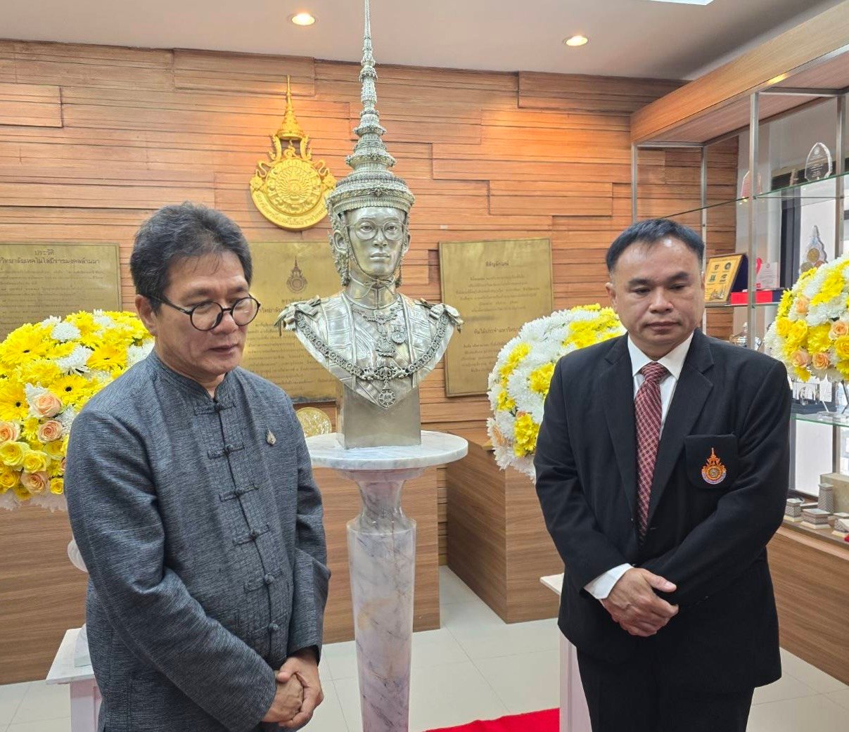 วันที่ 7 ตุลาคม 2568 ที่ มหาวิทยาลัยเทคโนโลยีราชมงคลล้านนา อาจารย์ ดร.ธงชัย ศรีสุขประเสริฐ ศิลปินจิตรกรรมและประติมากรรม ศิษย์เก่าและดุษฎีบัณฑิตกิตติมศักดิ์คณะศิลปกรรมและสถาปัตยกรรมศาสตร์ มอบพระบรมรูปหล่อสำริด (สีบรอนซ์) พระบาทสมเด็จพระบรมชนกาธิเบศร มหาภูมิพลอดุลยเดชมหาราช บรมนาถบพิตร รัชกาลที่ 9 ให้แก่มหาวิทยาลัยเทคโนโลยีราชมงคลล้านนา ผู้ทรงพระราชทานนามและตราประจำมหาวิทยาลัย เพื่อเป็นอนุสรณ์รำลึกถึงพระมหากรุณาธิคุณอันหาที่สุดมิได้ ในโอกาสนี้ รศ.วิเชษฐ์ ทิพย์ประเสริฐ รักษาราชการแทนอธิการบดี เป็นผู้แทนรับมอบผลงานเพื่อประดิษฐาน ณ ห้องเกียรติยศ อาคารสำนักงานอธิการบดี มทร.ล้านนา ต่อไป
